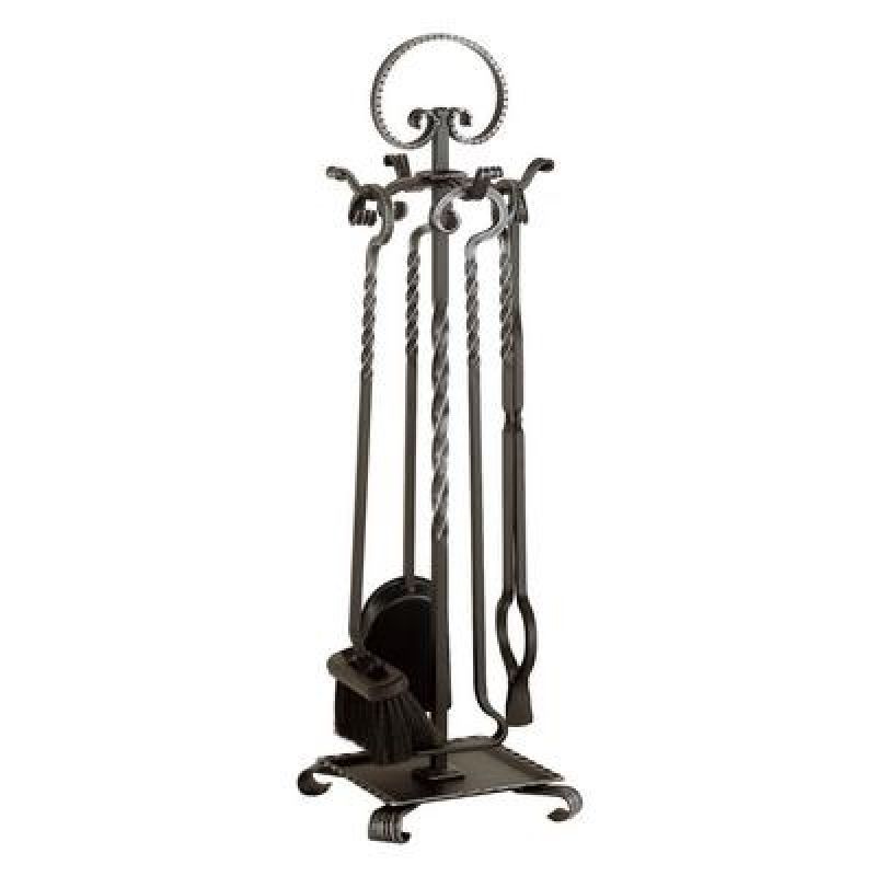 Heibi handgeschmiedetes Kaminbesteck aus Stahl 5-teilig schwarz antik Landhausoptik