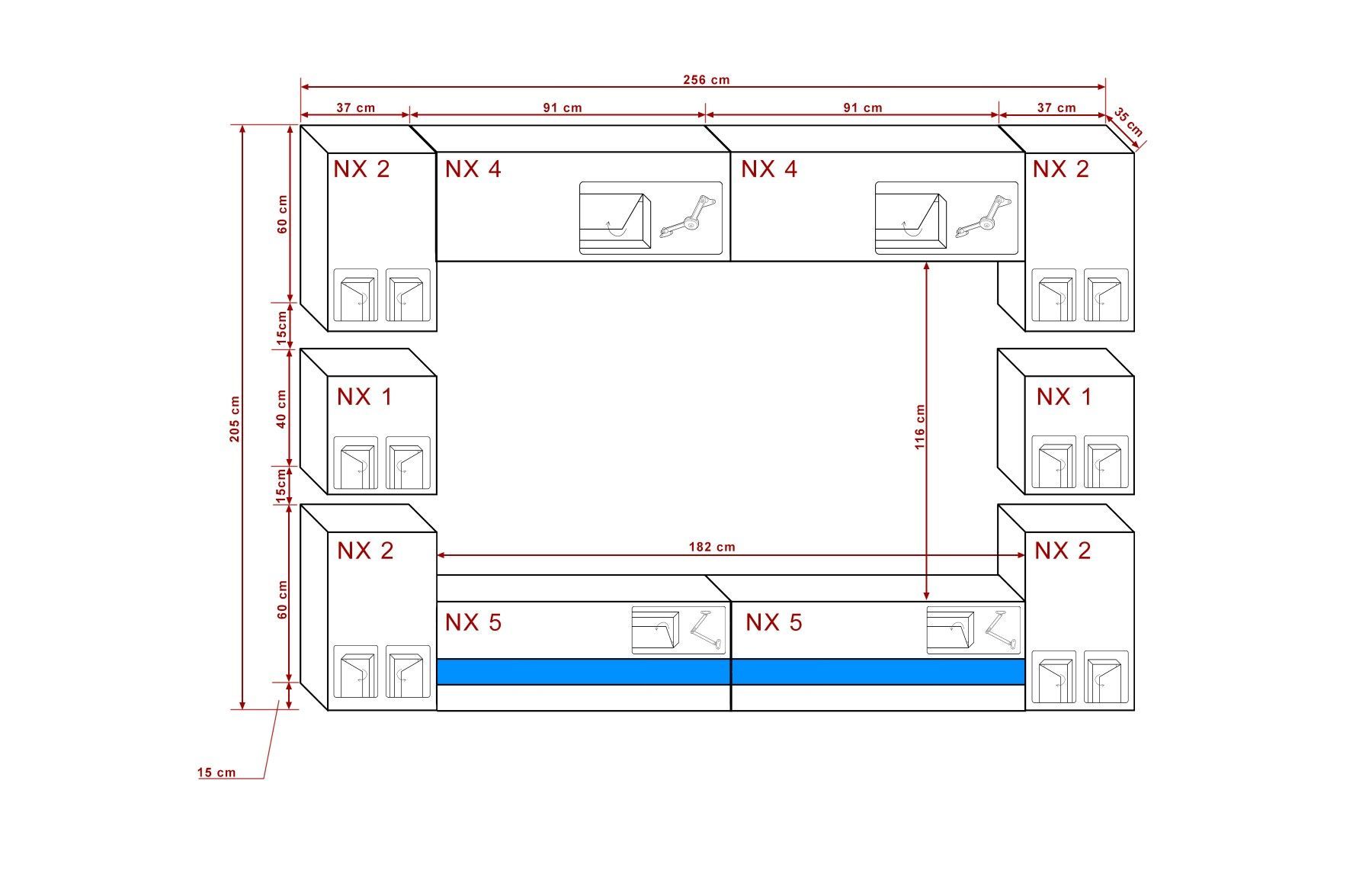 Heidi NX 36 Möbel für Wohnzimmer Wohnwand Mediawand Schrankwand Wohnschrank