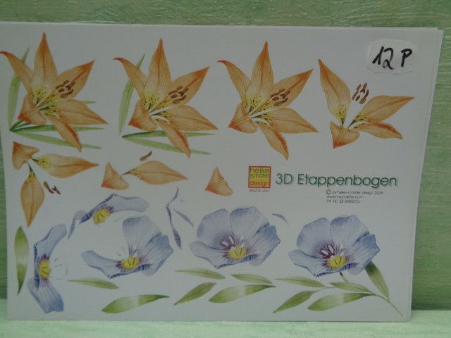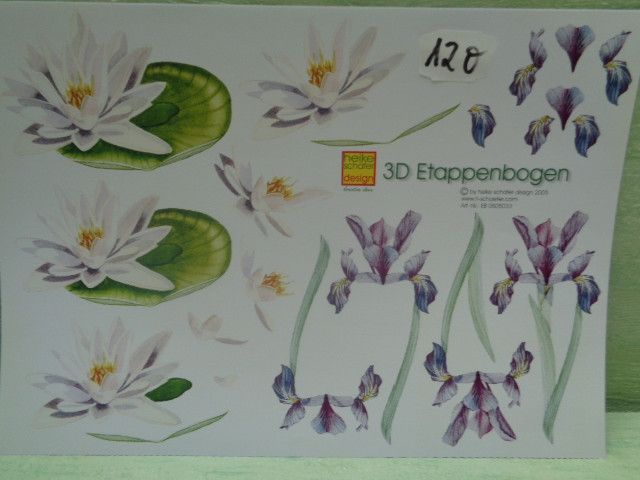 Heike Schäfer 3D Etappenbogen Din A4 Blumen Lilien Seerose zarte Blüten