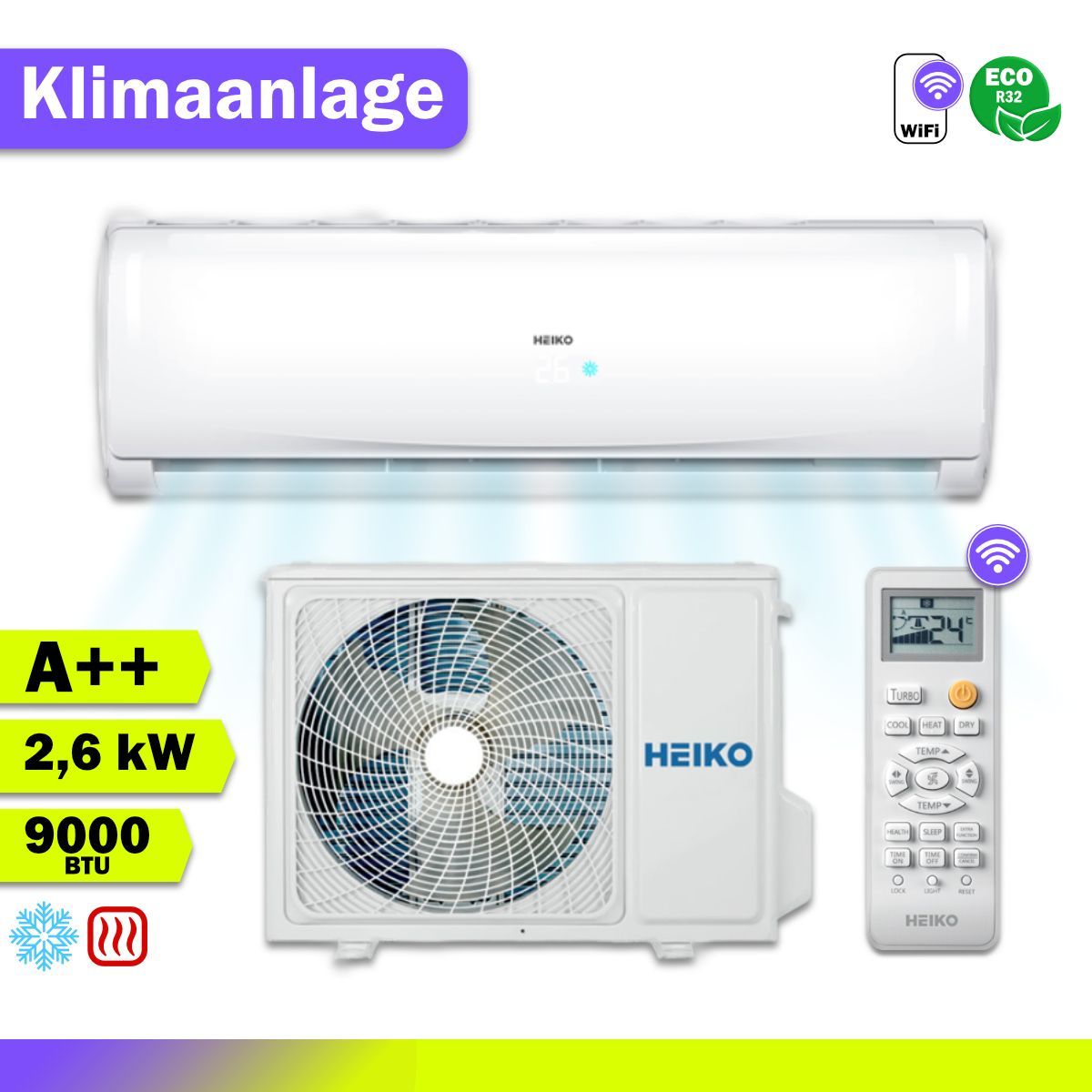 HEIKO BRISA Split-Klimaanlage Wandgerät 2,6?kW