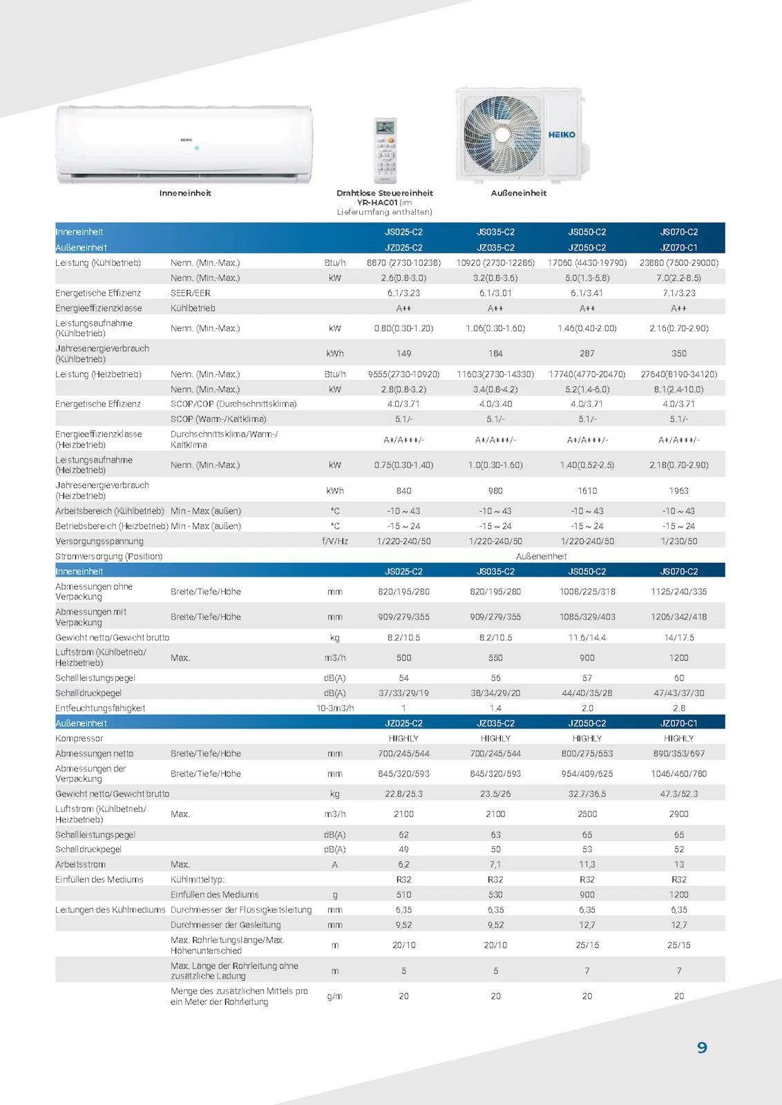 HEIKO BRISA Split-Klimaanlage Wandgerät 2,6?kW