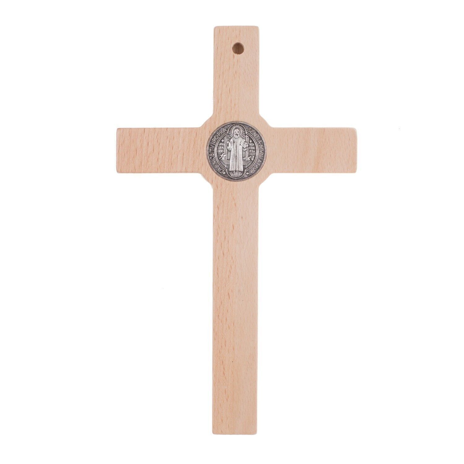 Heilige Benedikt Hängendes Kreuz Wandkreuz Holzkreuz Buchenholz 22 x 12 cm