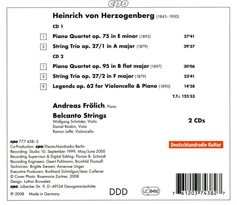 Heinrich von Herzogenberg (1843-1900): Klavierquartette op.75