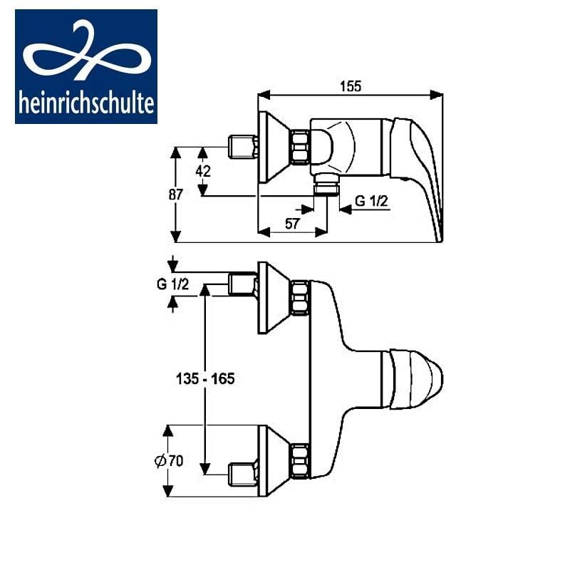 • Brausearmatur, Einhebelmischer • heinrichschulte Serie "Xena" • Wandarmatur mit hochwertiger Kartusche • Werkstoffe nach TrinkwV und UBA • DIN DVGW