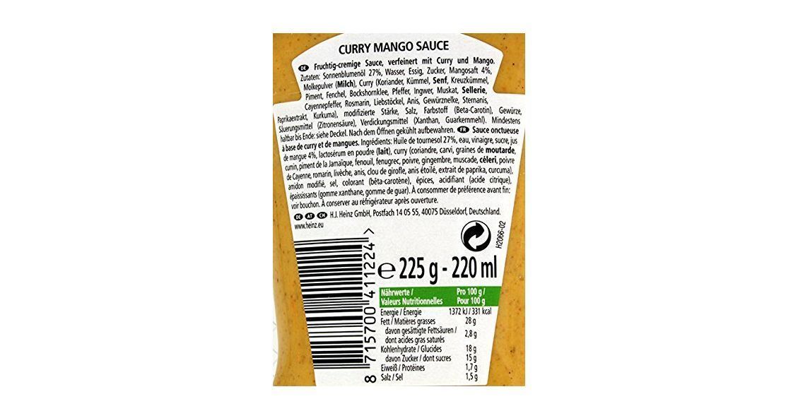 Heinz American Style Curry Mango Euro Fruchtig-würzige Grillsauce in der Kopfsteherflasche 220ml Grillsauce - 3 Varianten Stückzahlen Ein delikates Muss nach amerikanischer Art: Die Heinz American Style Curry Mango passt zu einer Vielzahl an Gerichten und überzeugt mit einem einzigartigen Geschmack