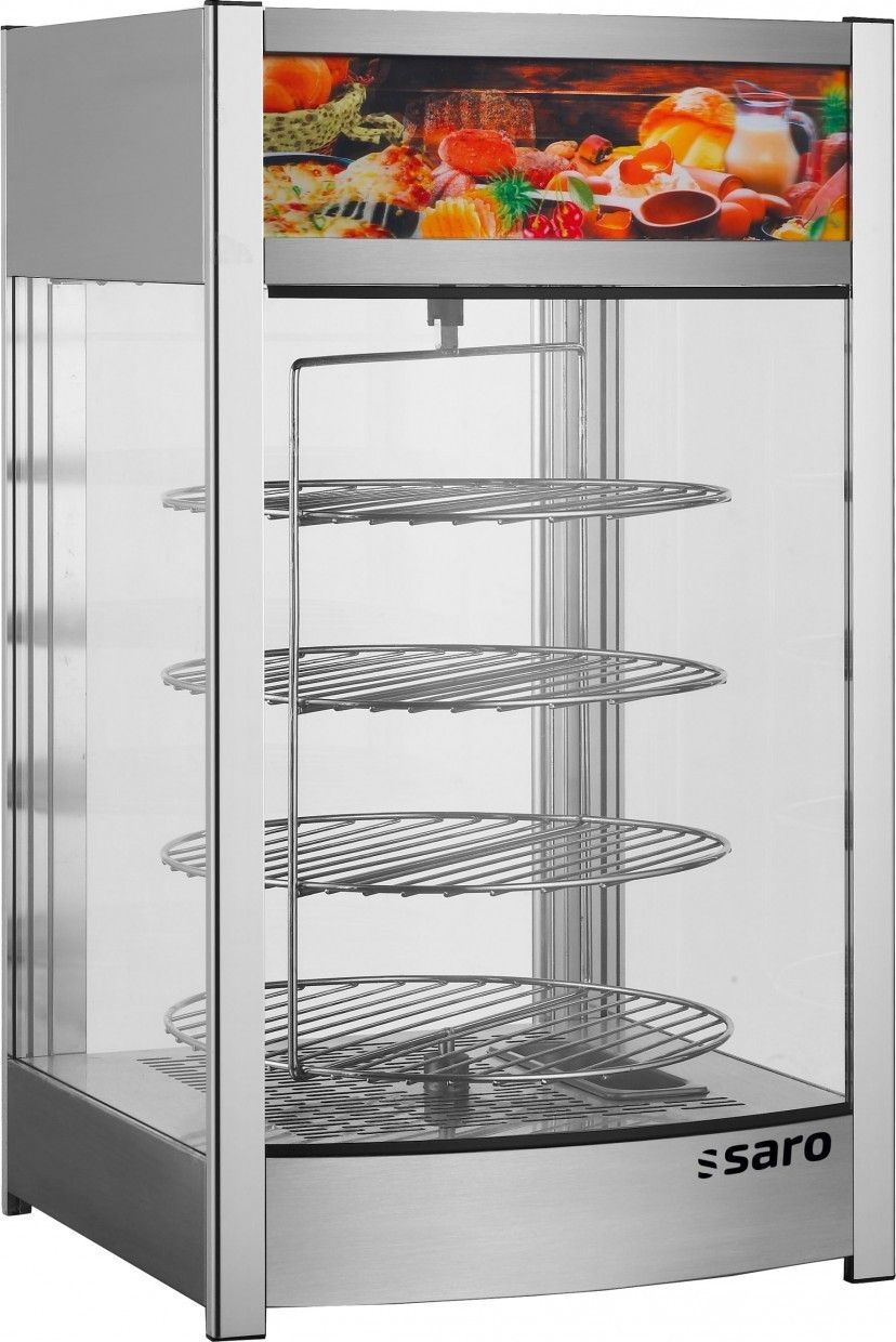Heiße Theke Mod. NIKLAS - Material: Edelstahl - 4 rotierende Roste, verchromt ø 355 mm - Tür auf der Rückseite - Manuelle Temperaturkontrolle - Inkl. Wasserschale zur Befeuchtung der Luft - Beleuchtetes Display - Gewicht: 24 kg - Maße: B 460 x T 448 x H 785 - Inhalt: 97 Liter - Temp. +30/+90 °C - Anschluss: 230 V - 50 Hz - 1,2 kW