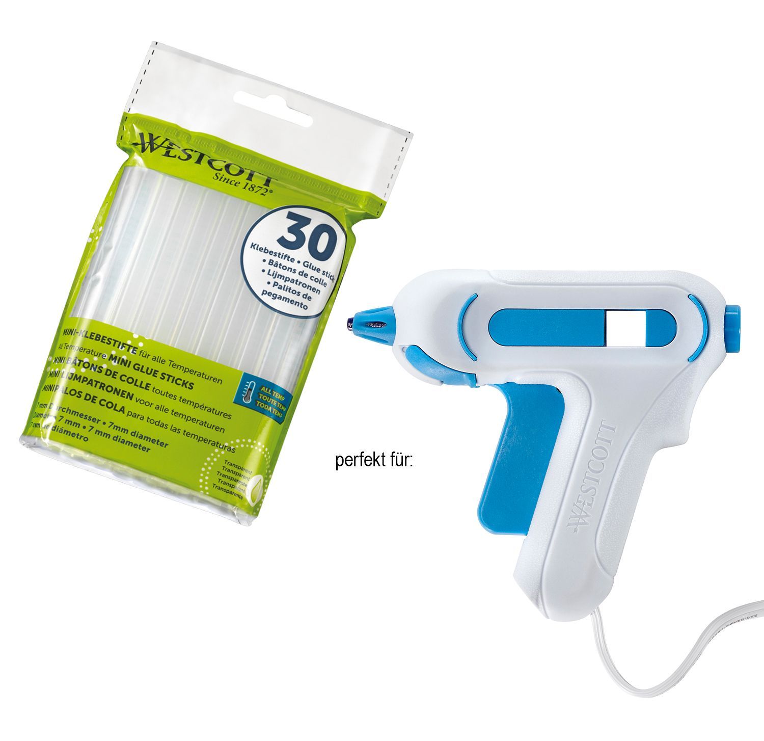 Westcott Heißklebesticks 7mm 30 Stück, Transparente Klebestifte für Heißklebepistole