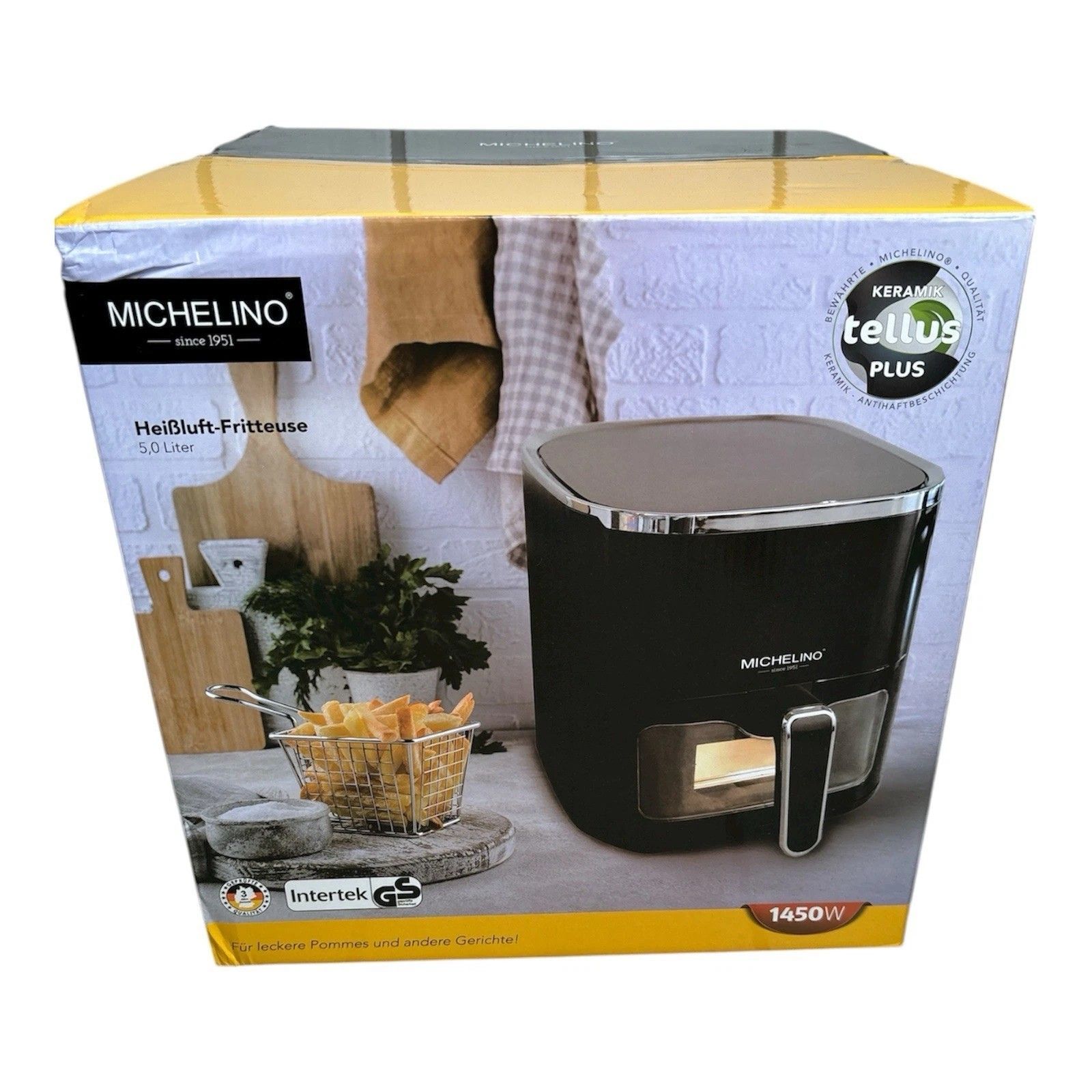 Michelino Heißluftfritteuse Michelino 5,0 Liter Schwarz mit Sichtfenster Air Fryer
