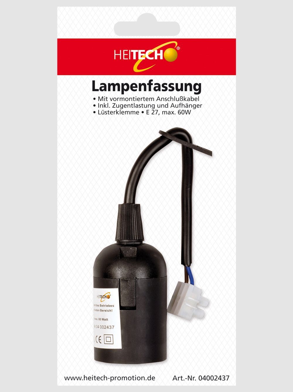 HEITECH Heitech Lampenfassung E27 mit Kabel - Lampen Fassung schwarz mit max. 60 W - Renov