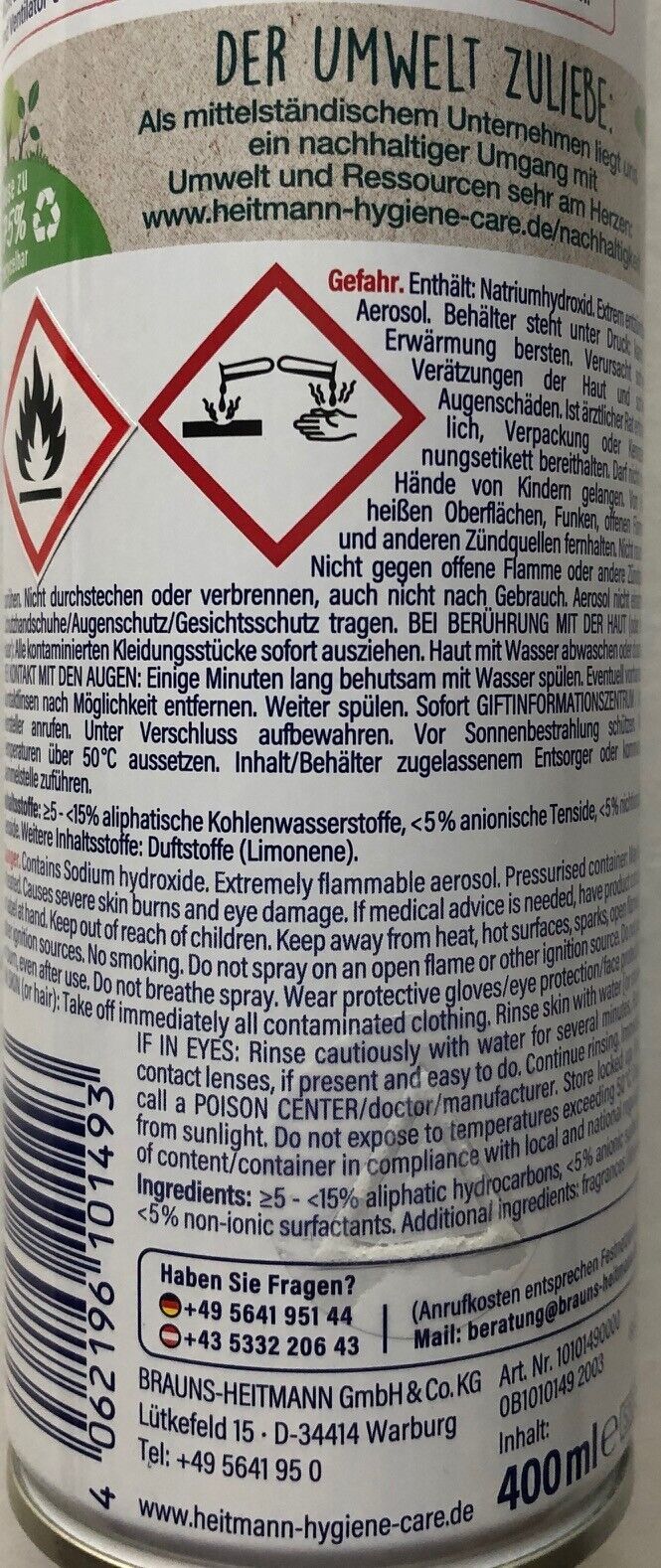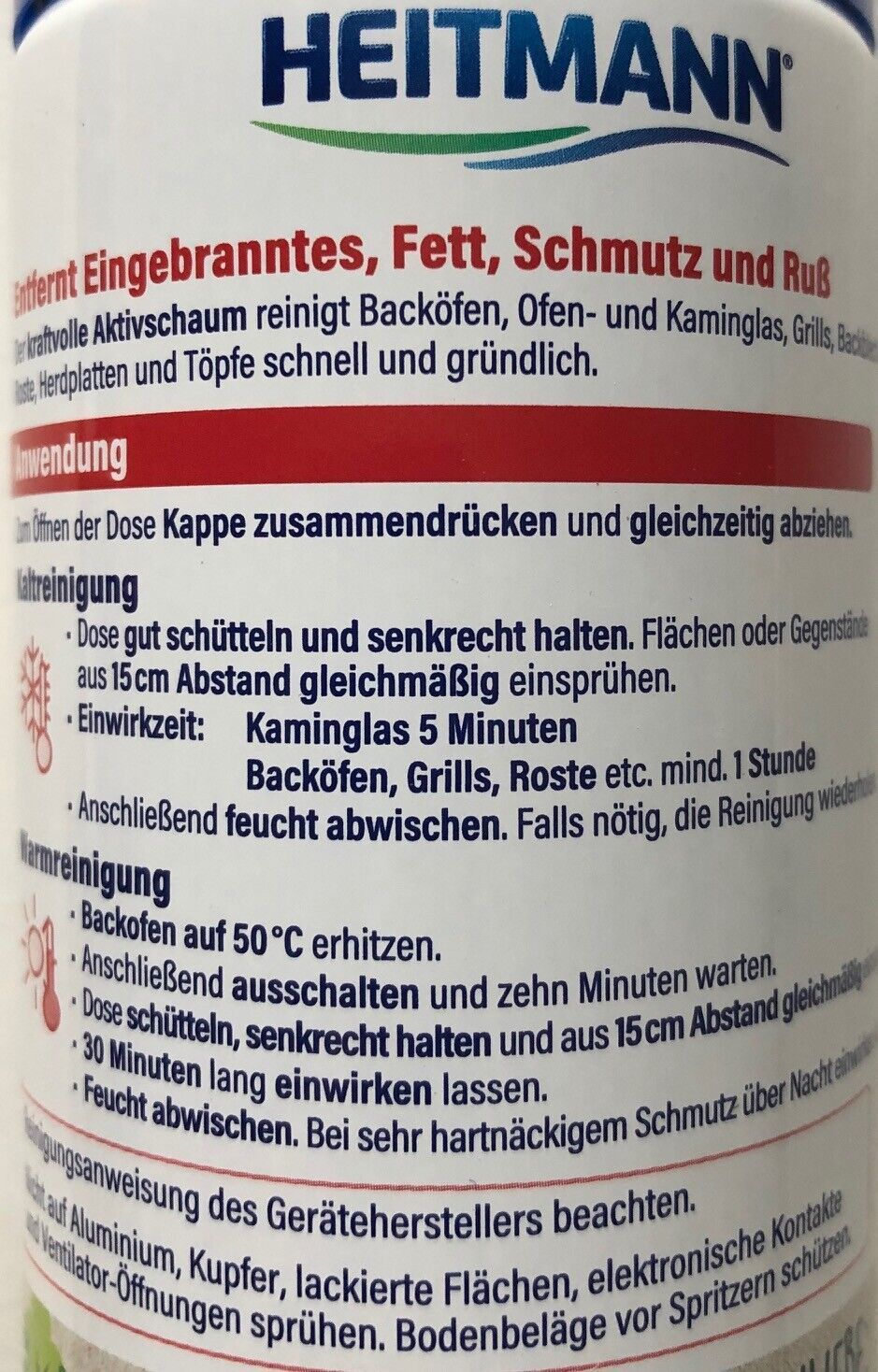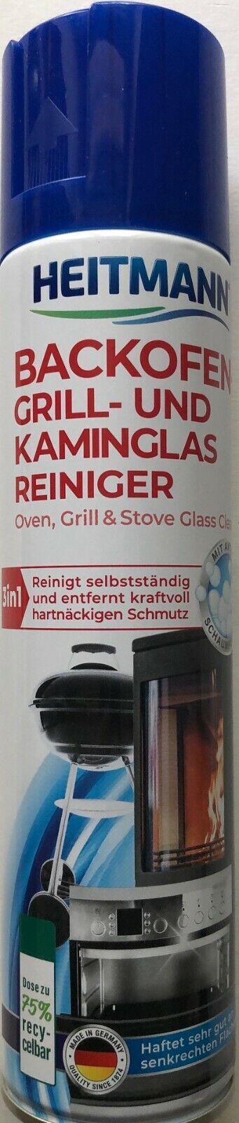 Heitmann Backofen Grill und KAMIN GLAS Reiniger Aktivschaum 400ml Dose,12er Pack