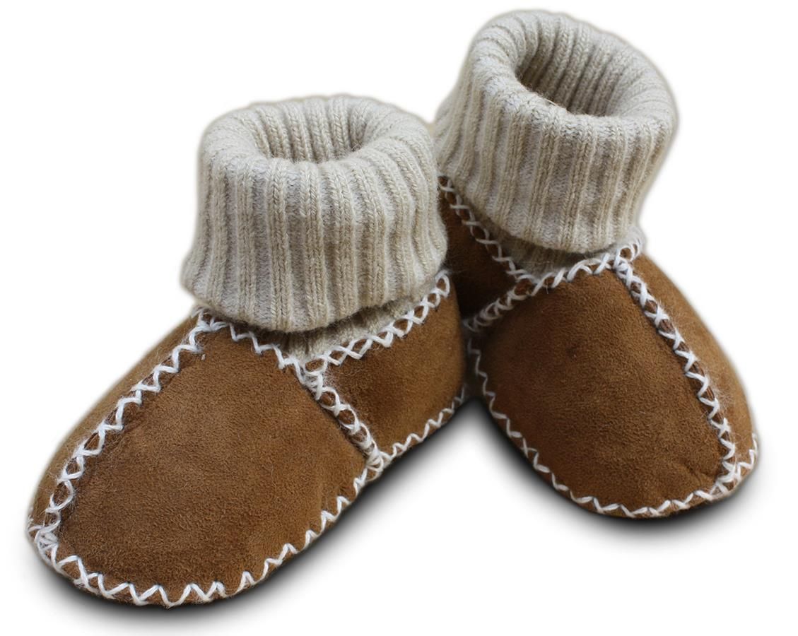 HEITMANN FELLE Heitmann Felle Paar Baby-Lammfellschuhe, Farbe Camel mit Strickbündchen, Größe