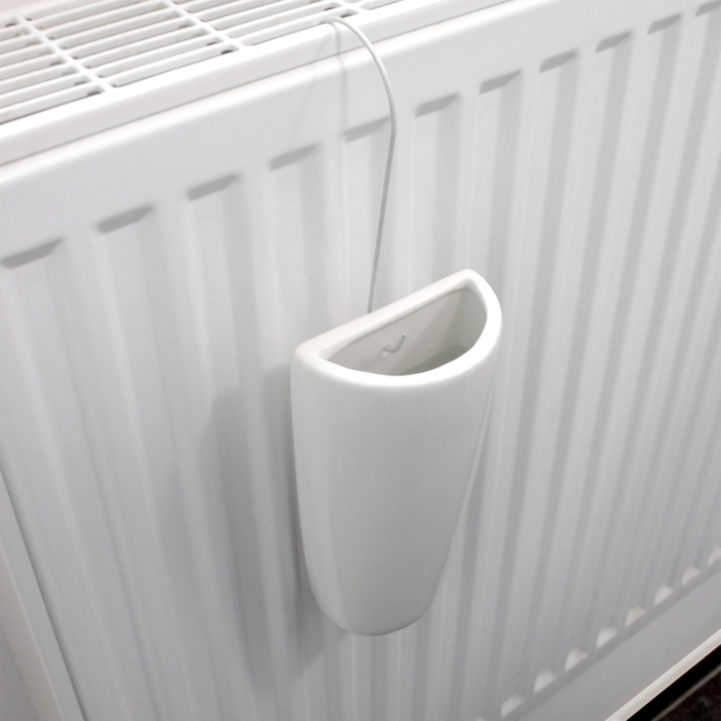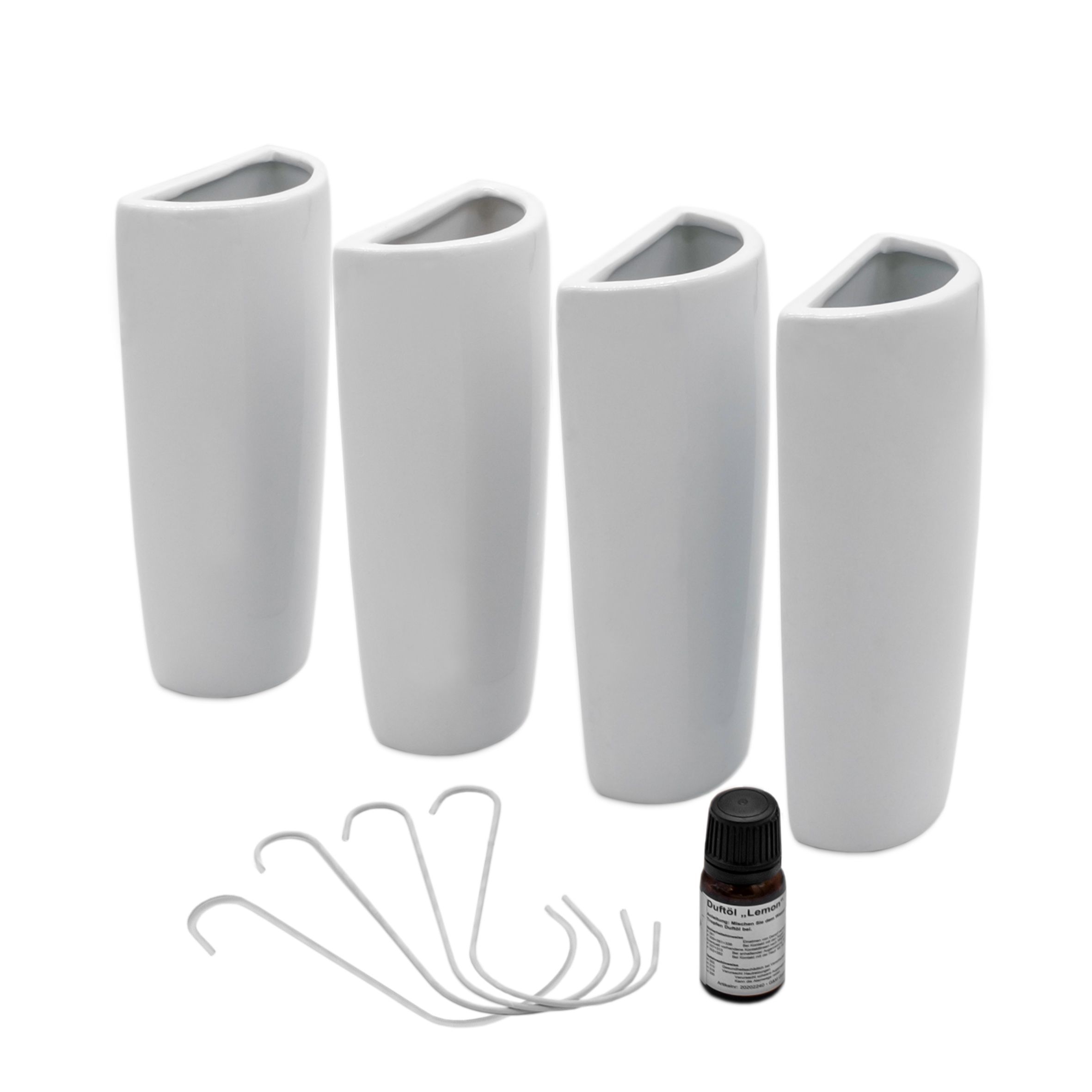 4er Set Luftbefeuchter aus Keramik in weiß im halbrunden Design zum Einhängen an Heizkörpern