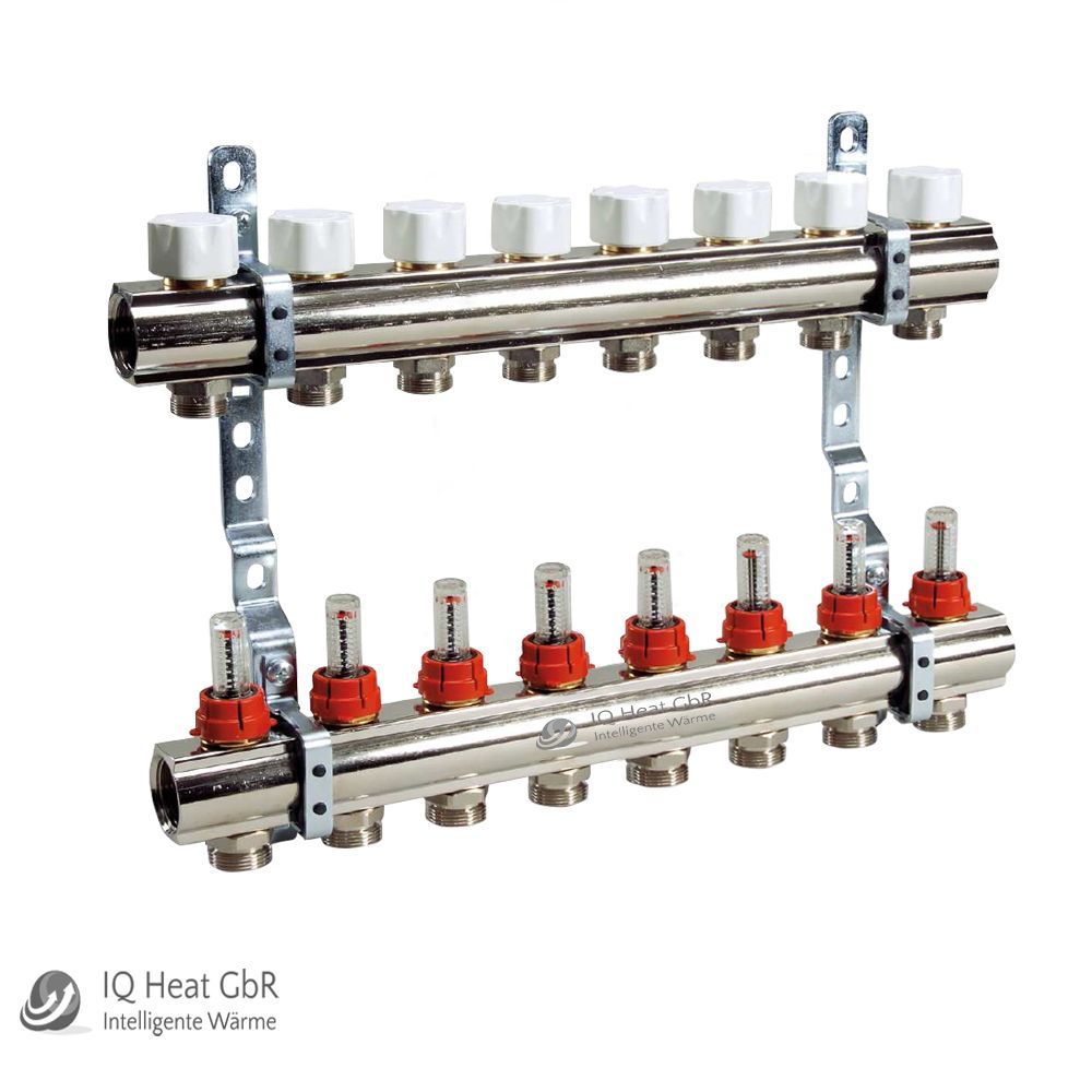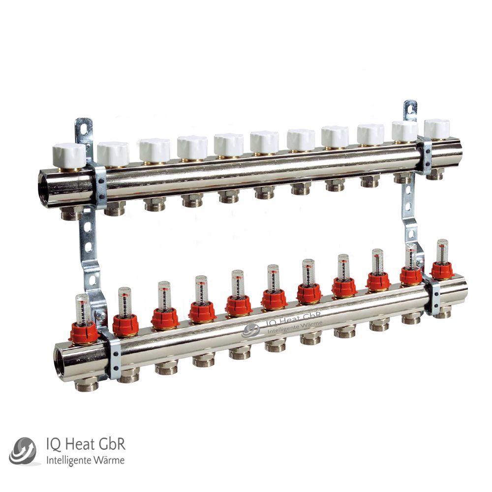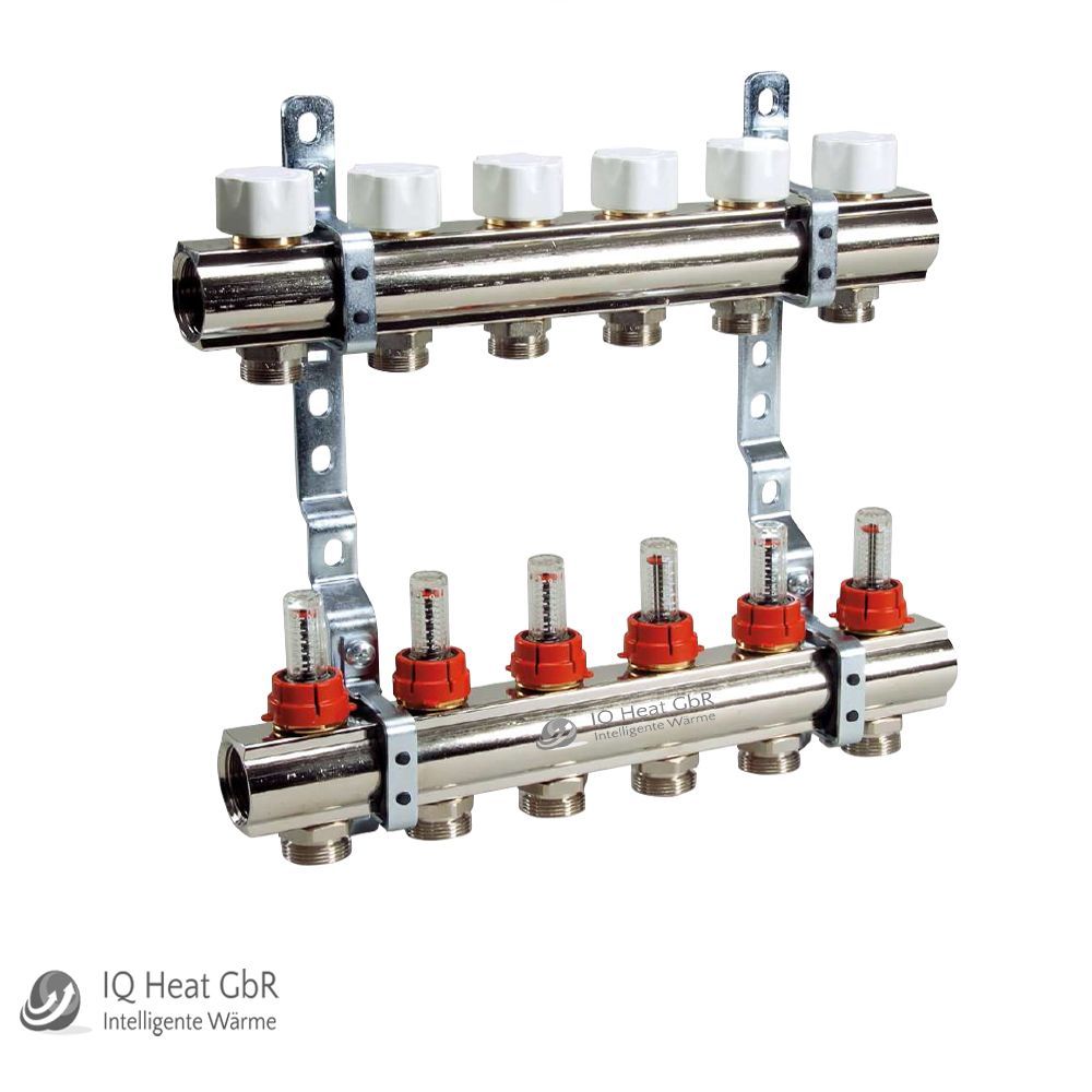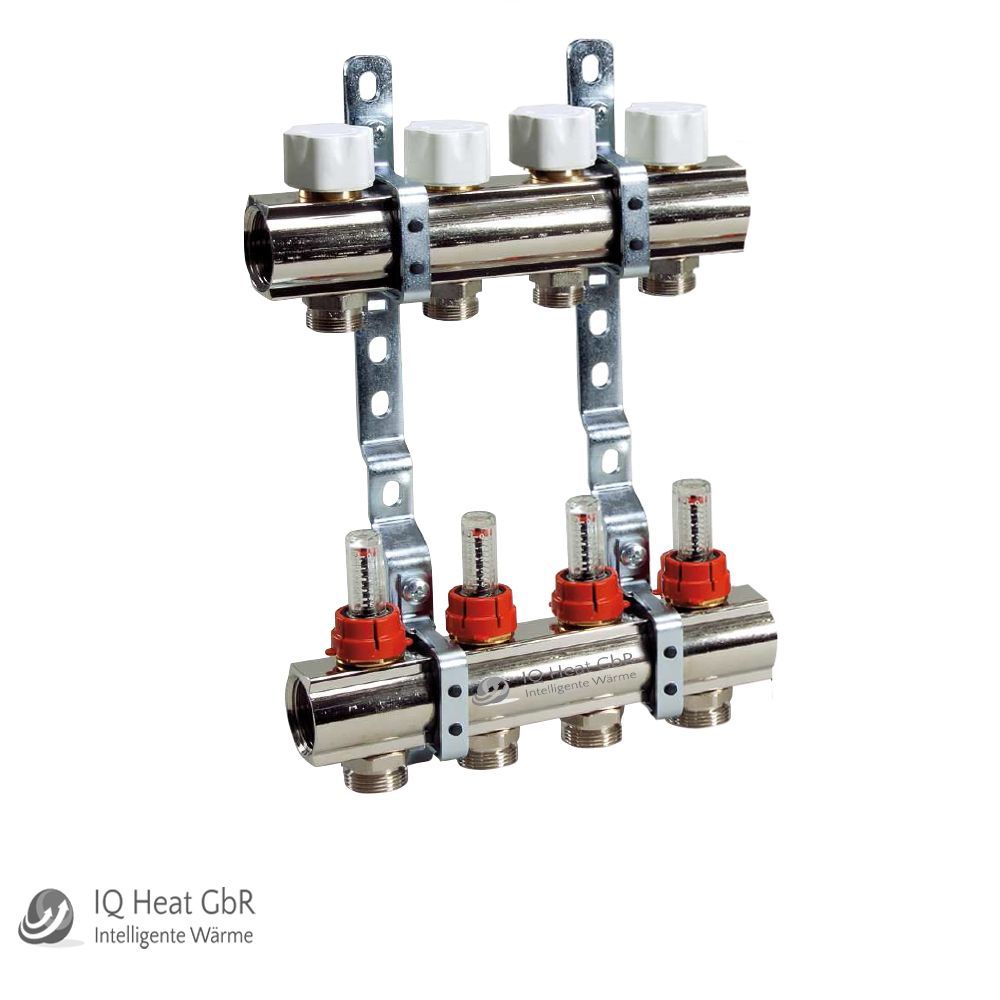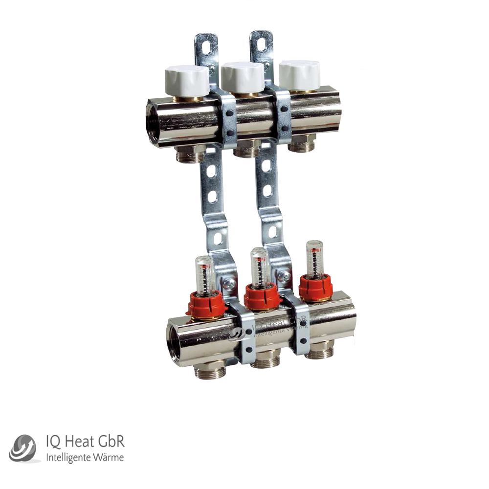 Heizkreisverteiler Messing mit Durchflussmesser, Fußbodenheizung HKV