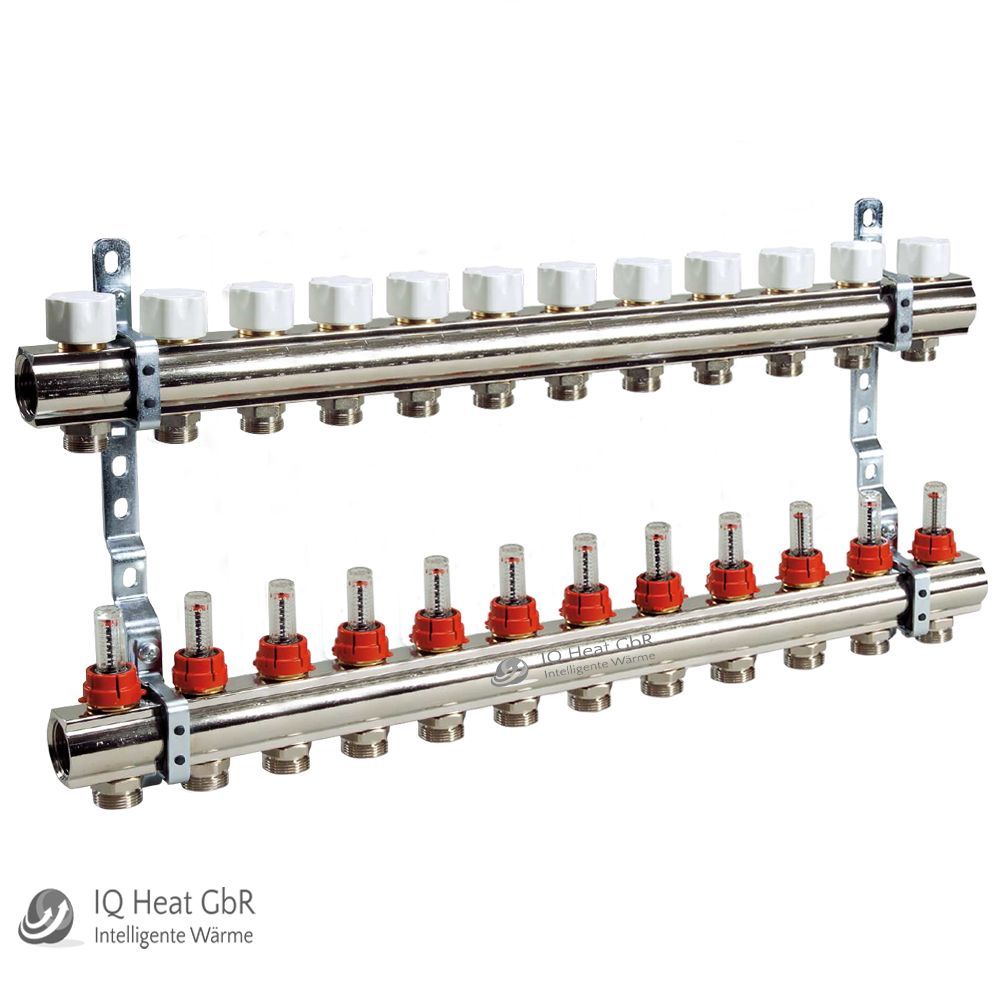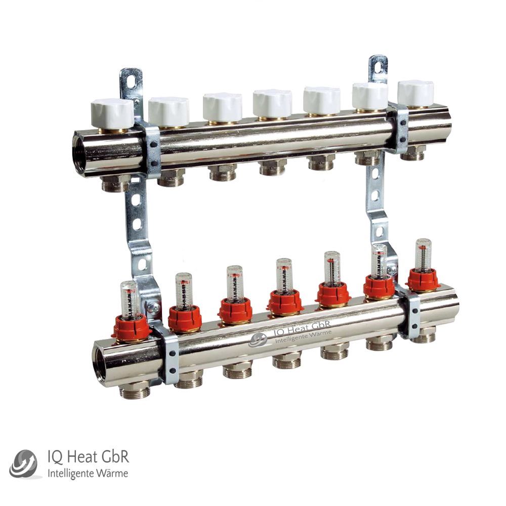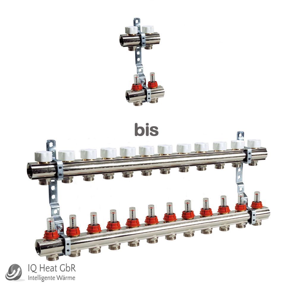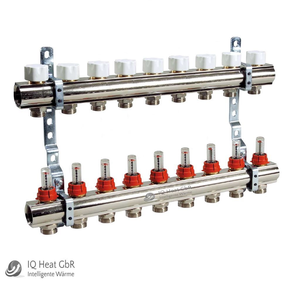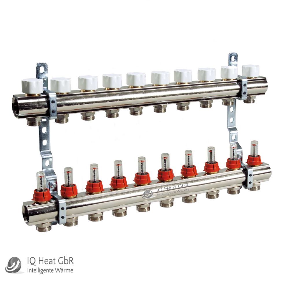 Heizkreisverteiler Messing mit Durchflussmesser, Fußbodenheizung HKV