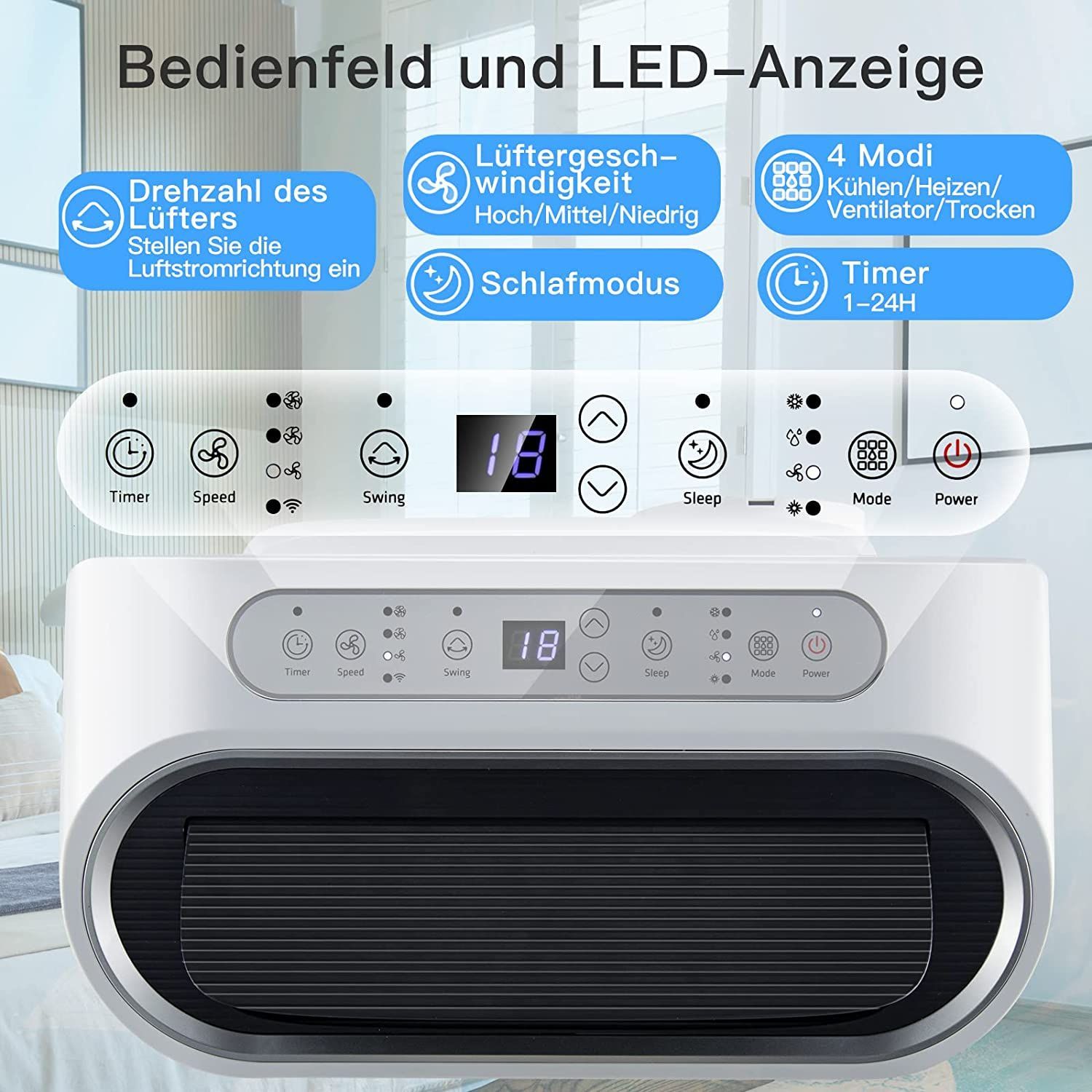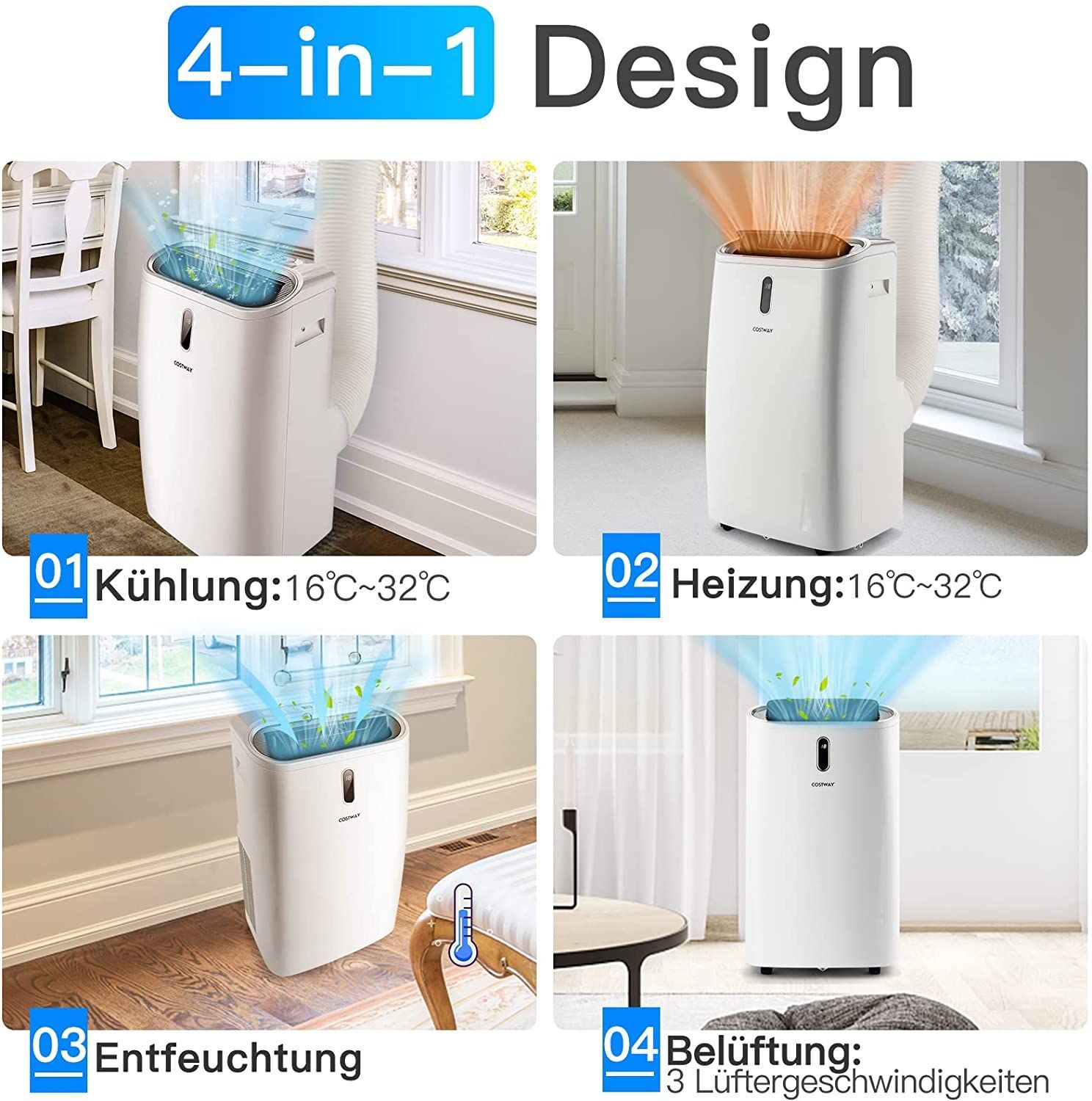 Heizlüfter, Klimagerät mobil, 14000 BTU 5 in 1 Mobile Klimaanlage