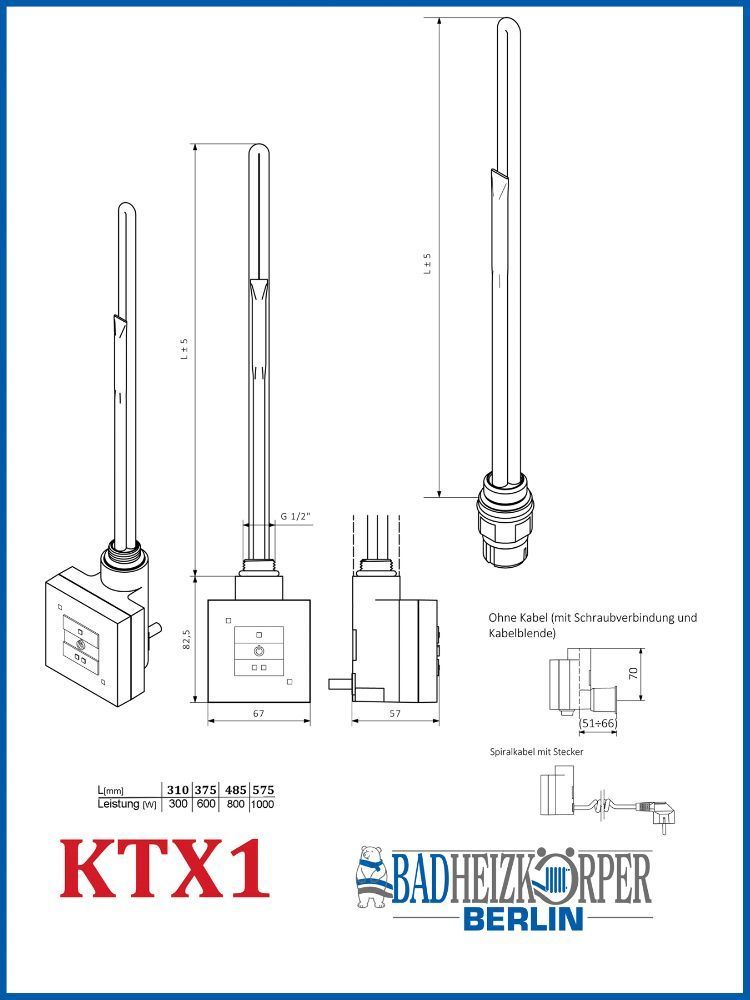 Heizstab , Heizelement mit Steuerung für Badheizkörper KTX1 Schwarz