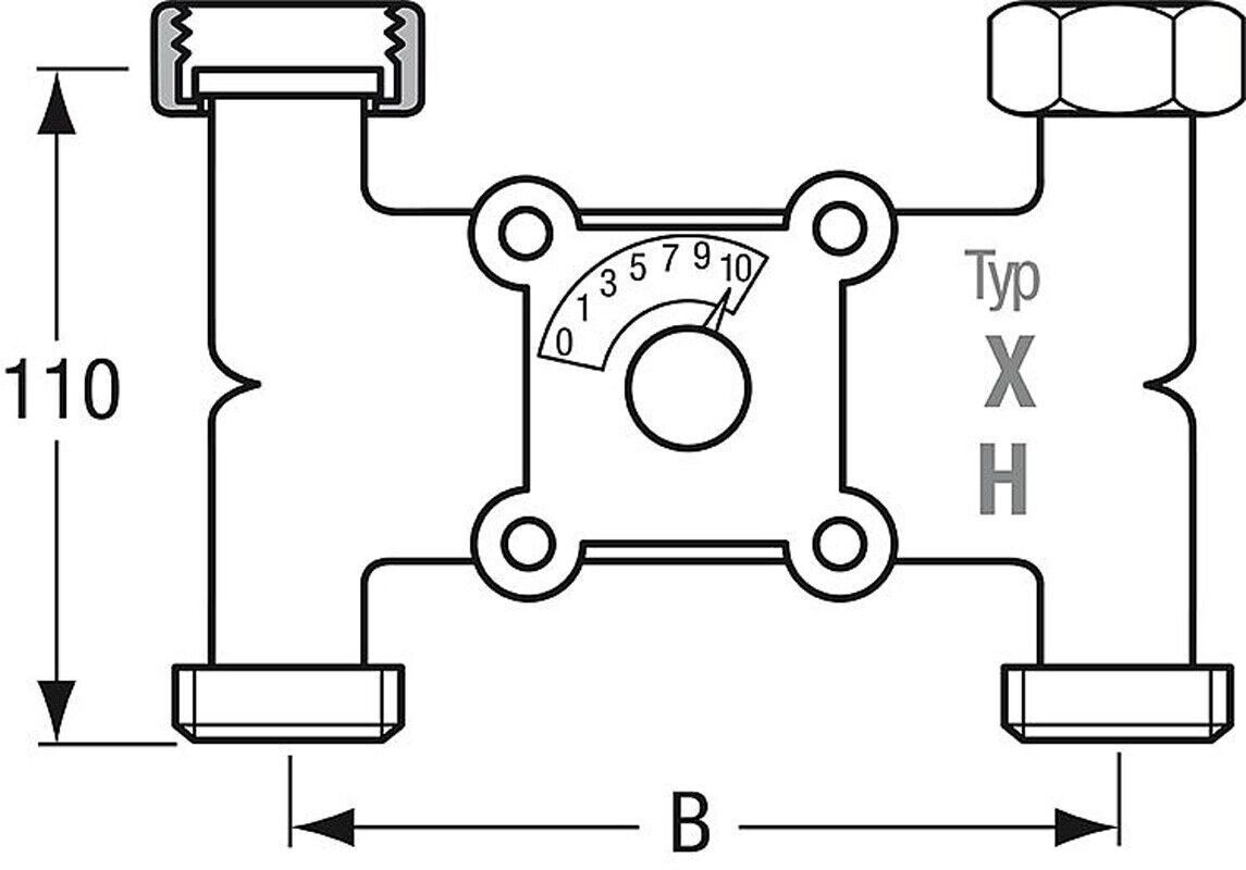 MUT 4 Wege Mischer VMX-H 125 mit Achsabstand 125 mm Für den Einbau in Kesselbaugruppen von Zentralheizungsanlagen geeignet. Die Mischer sind für rechts- oder links-Einbau geeignet. Technische Daten Größe: DN25 (1 ) Drehwinkel: max. 90° Mediumtemperatur: 5°C bis 110°C Werkstoff Körper: Gr