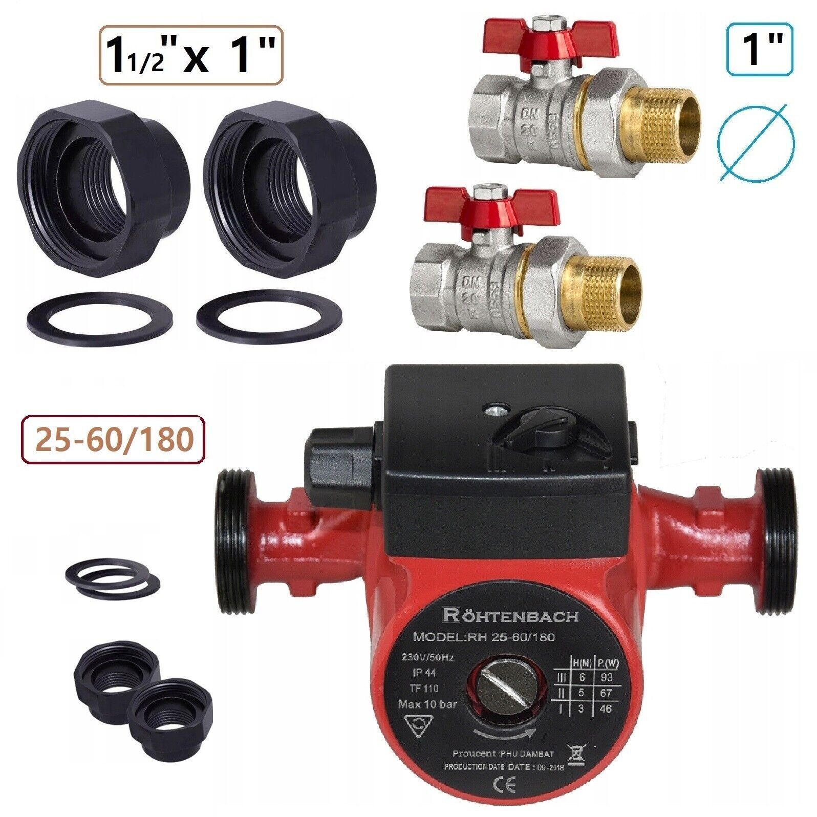 Heizungspumpe Umwälzpumpe Röhtenbach 25-60/180 + Verschraubungen + Ventile