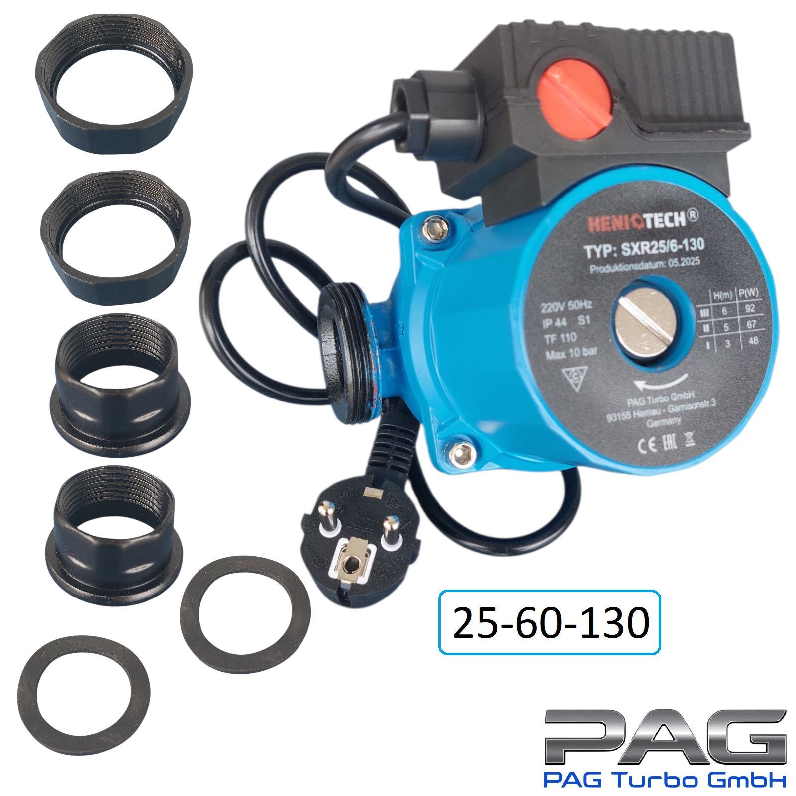 Heizungspumpe Umwälzpumpe SRX 25-60/130 mit Verschraubungen und Kabel