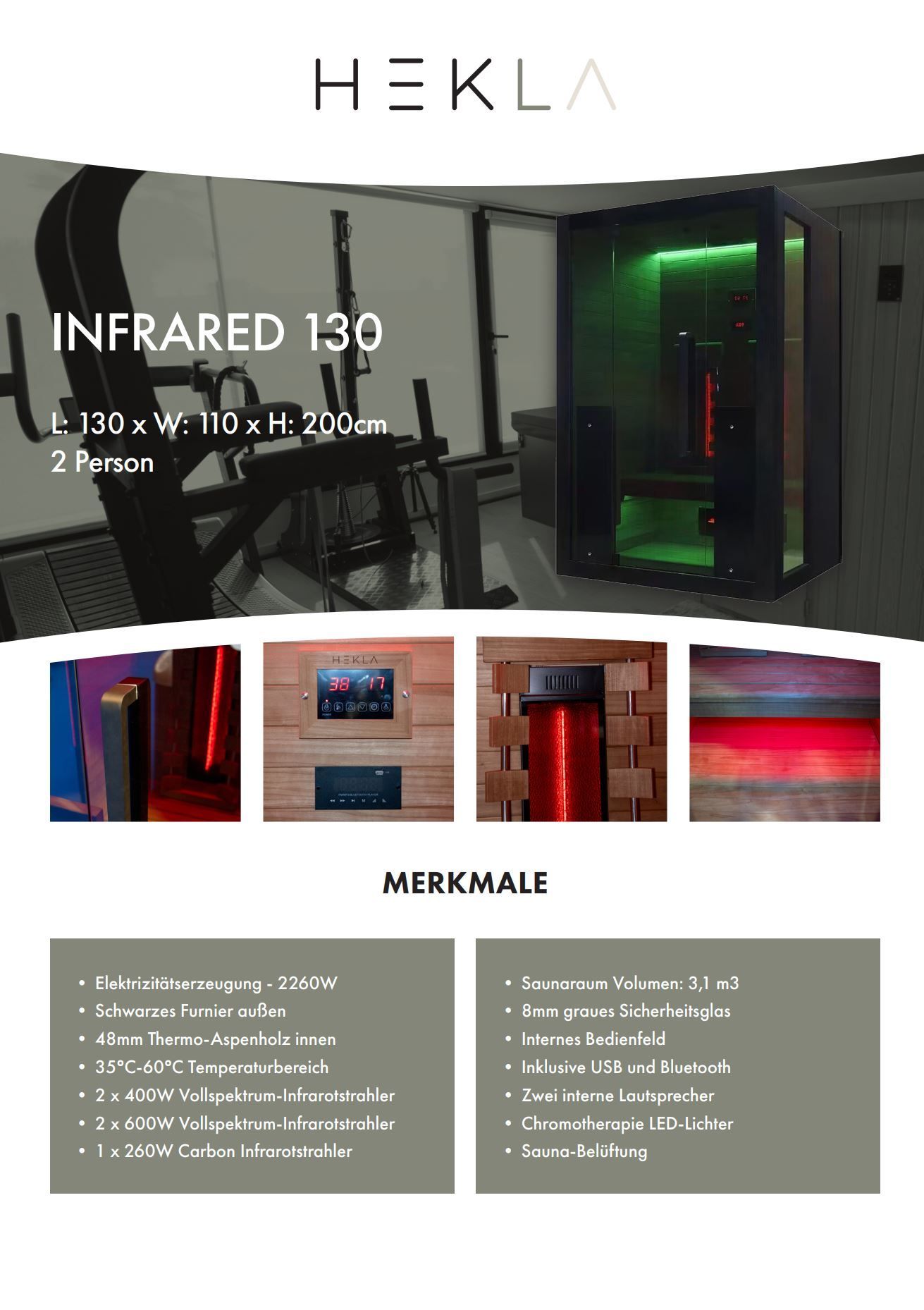 HEKLA IR130 Infrarotkabine Infrarotsauna 130x120x200 2 Person - opt. Aufbauservice NRW
