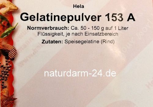 Hela Gelantinepulver 153 A, 1kg, Rind Hela Gelantinepulver 153 A, 1kg aus Speisegelantine vom Rind Hela Gelantinepulver 153 A, 1kg Dieses hochwertige Gelantinepulver wurde aus reiner Speisegelantine vom Rind hergestellt. Ungewürzt Allgemeine Geschäftsbedingungen der Firma Naturdärme Seidel Dahlienst