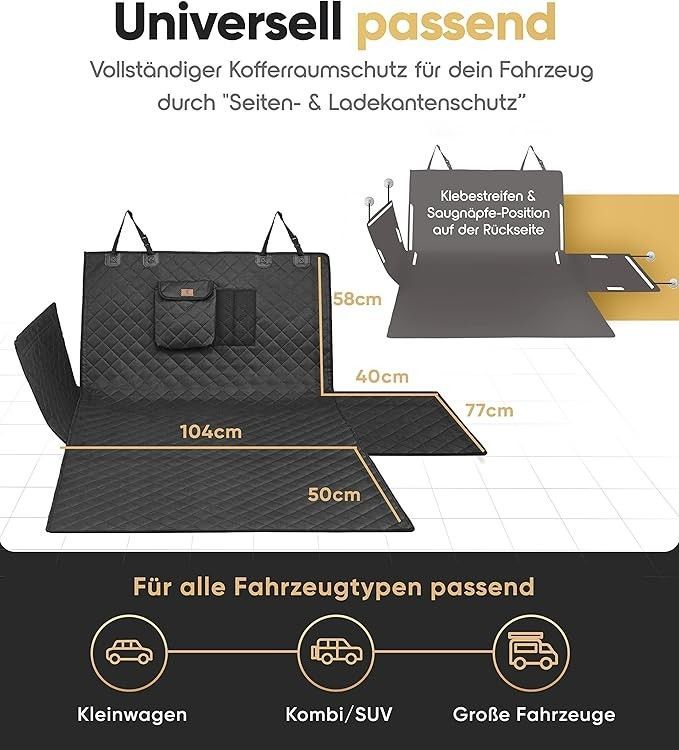 Heldenwerk Hundekofferraumschutz, Wasserdichte, Kratzfeste Hundedecke mit Seitenschuz