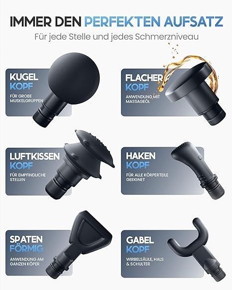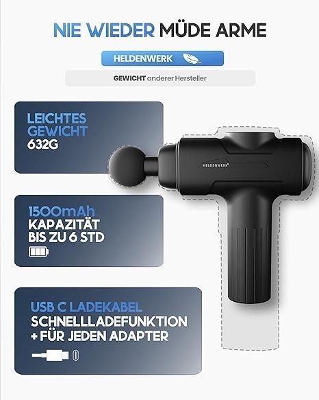 Heldenwerk Massagepistole 3200 U, in, 6 Köpfe, USB-C I Muskel-Massagegerät, Schwarz
