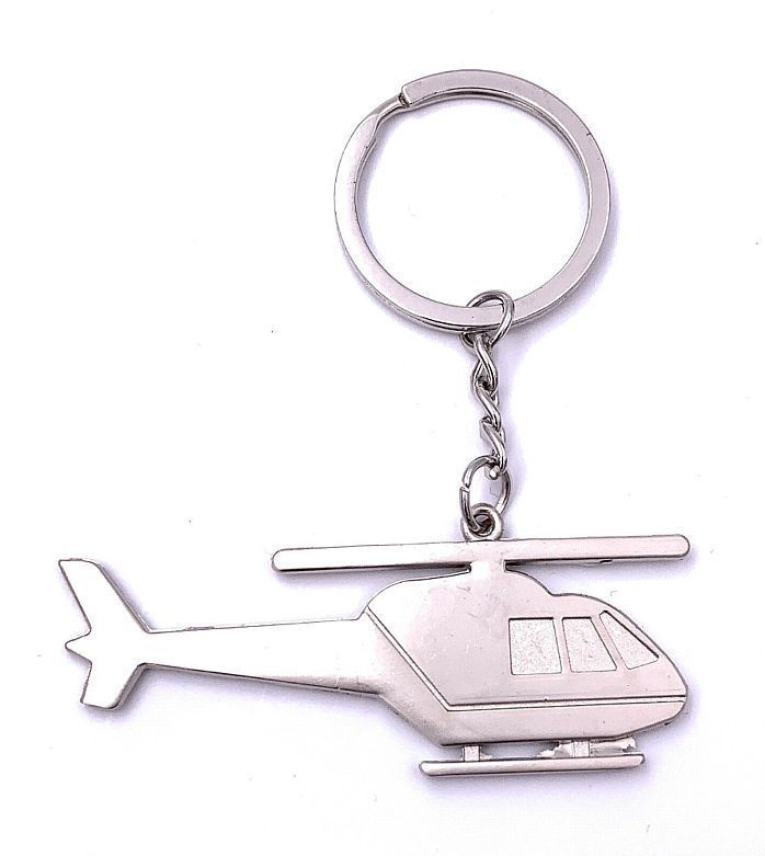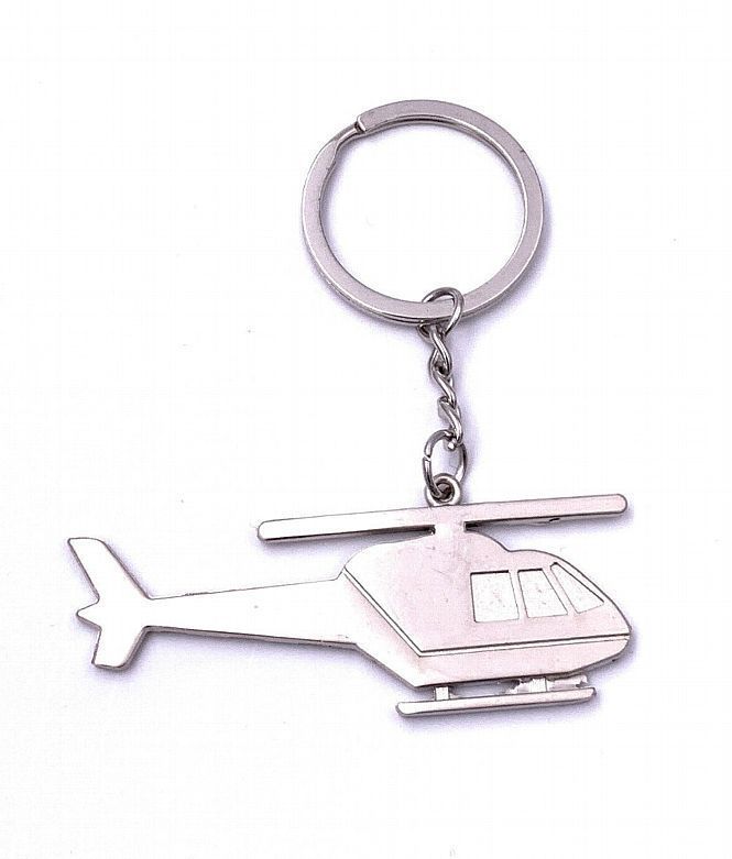 Helikopter Hubschrauber flach Schlüsselanhänger Keychain Silber Metall