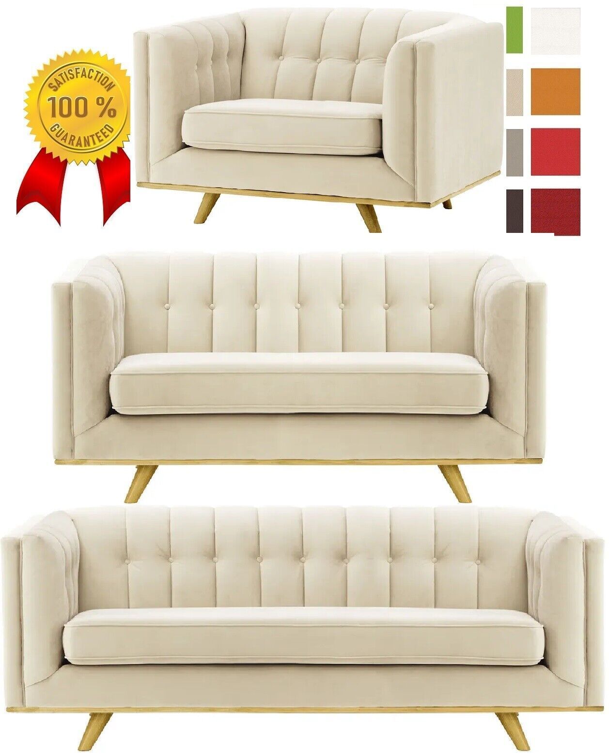 Hellbeige CREME SAMT SET 1 + 2 + 3 Sofagarnitur COUCH SESSEL 3 SITZER Wohnlandschaft