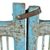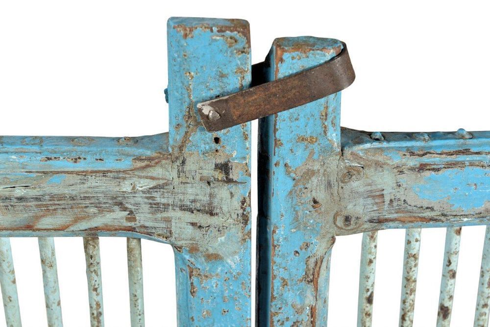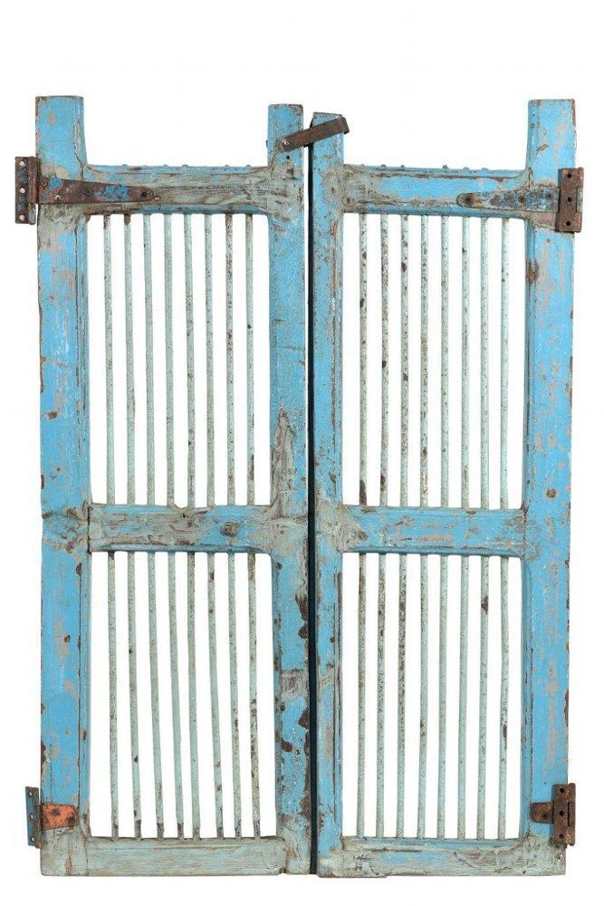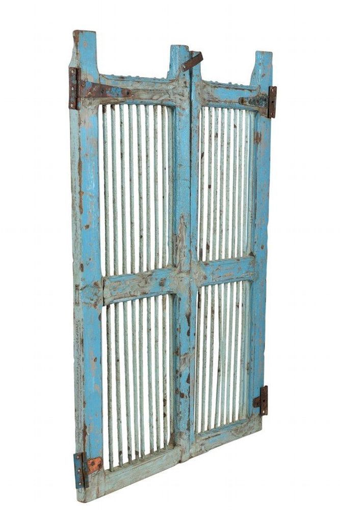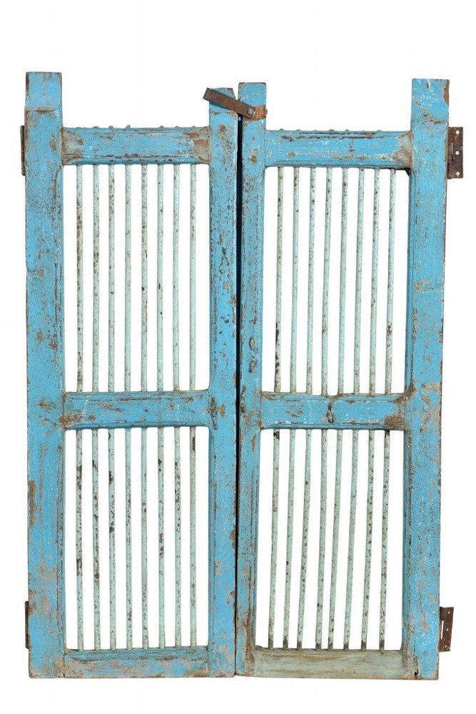 Hellblau lackiertes Tor aus Teakholz, das als Bar Tuer dienen kann