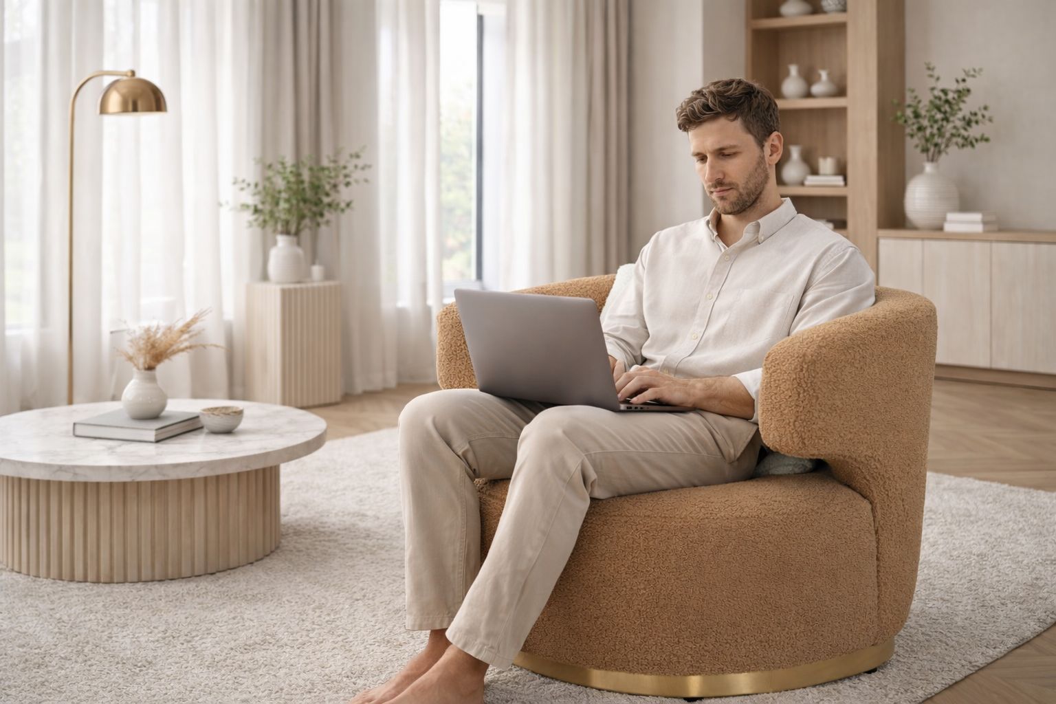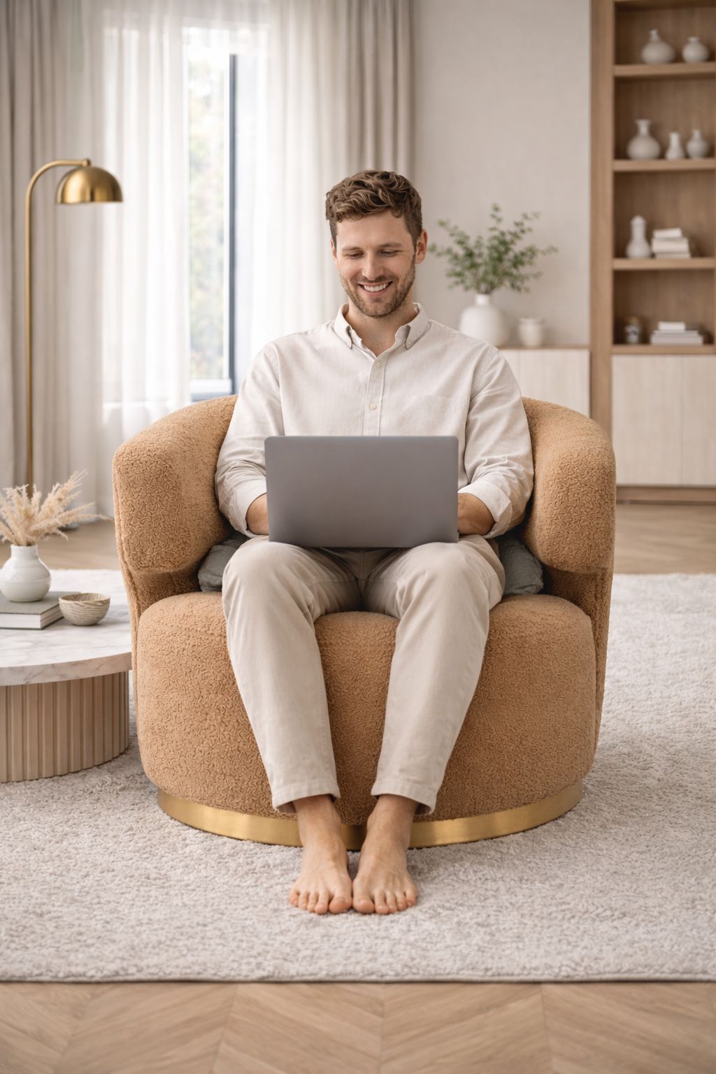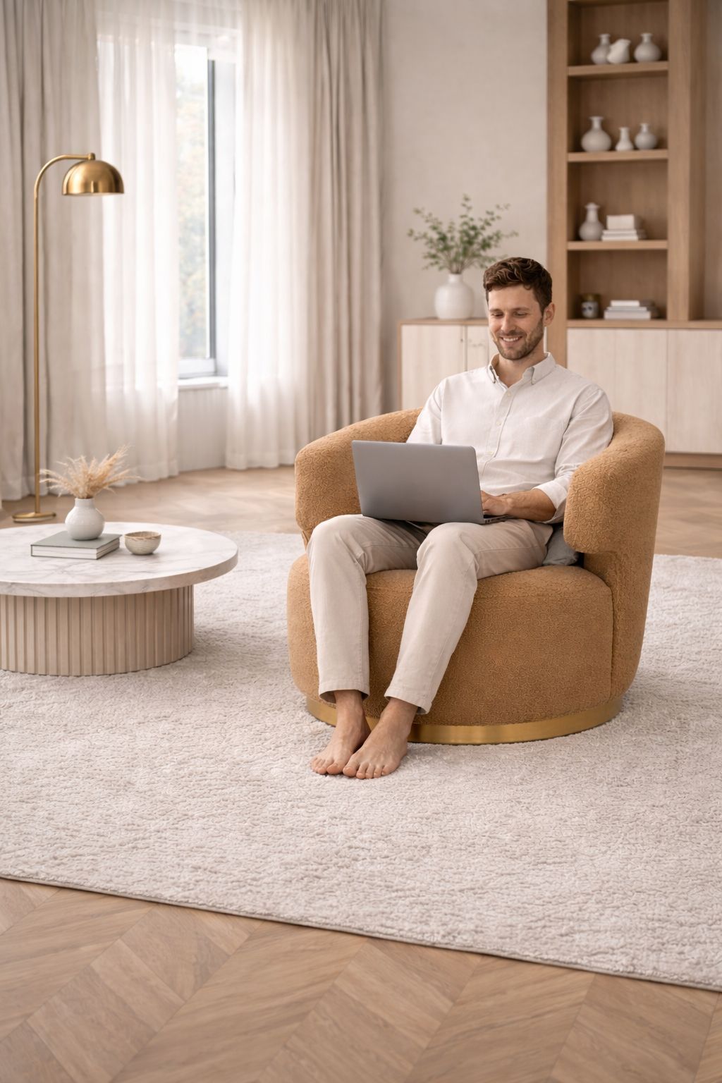 Hellbrauner Sessel Designer Polstersitzer Einsitzer Stoffsessel