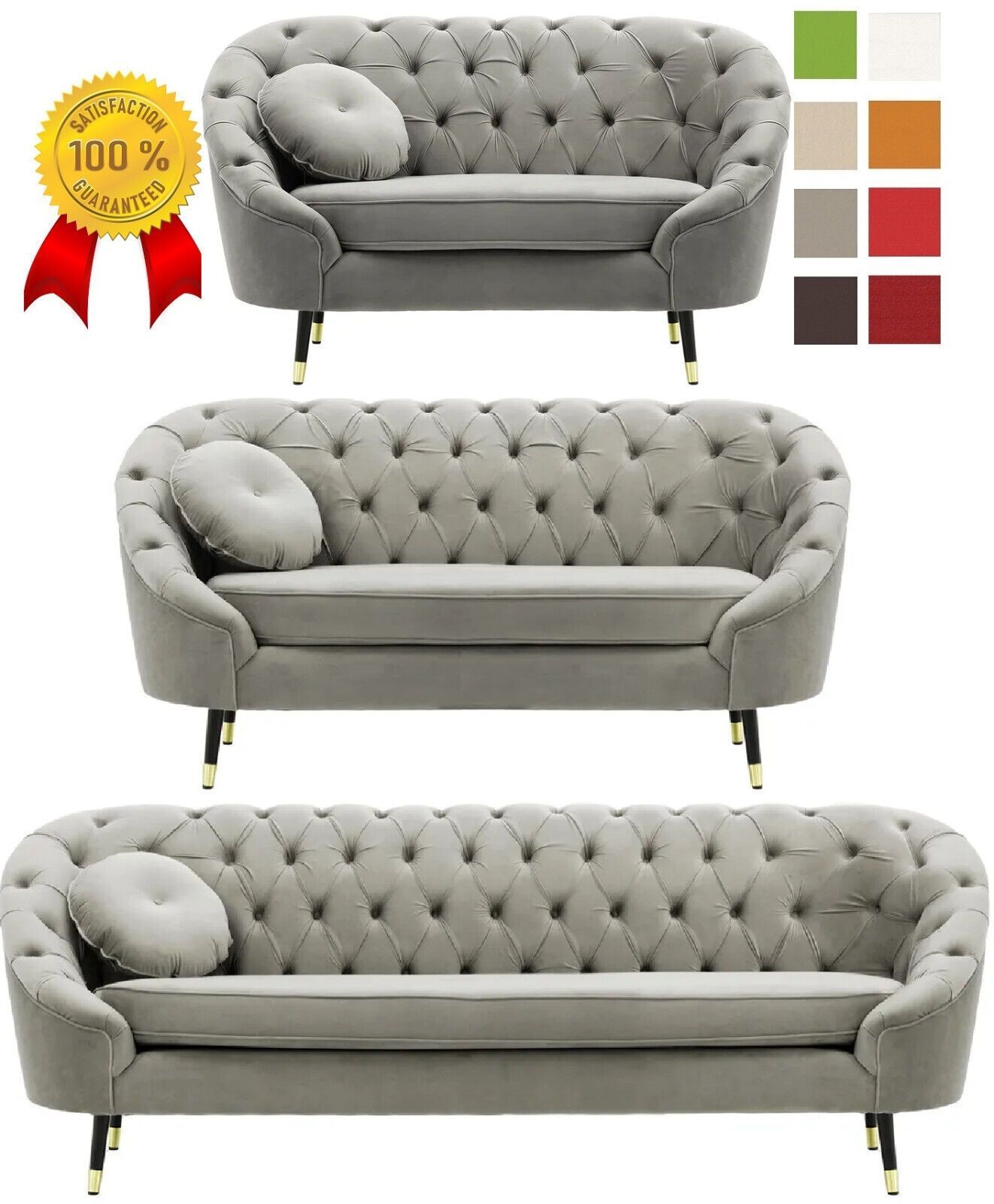 Hellgrau SAMT SET 3-2-1 Garnitur SESSEL SITZER Chesterfield Wohnlandschaft 1960
