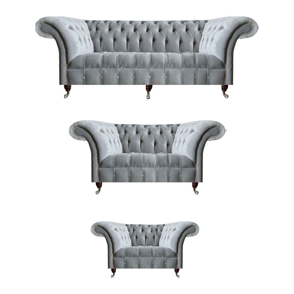 Hellgraue Chesterfield Textilsofas Designer Dreisitzer Sessel Sitzmöbel