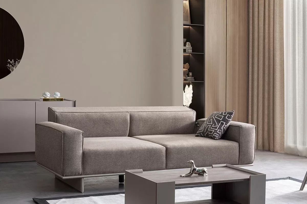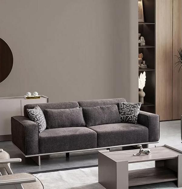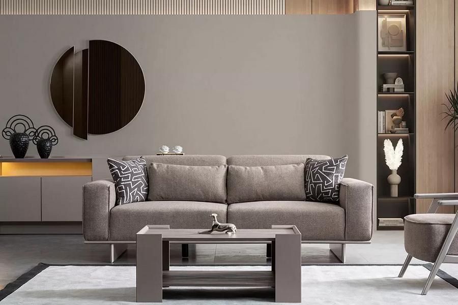 Hellgraue Sitzgarnitur Polster Stoff Couch Textil Sofa Sofagarnitur Moderne 3 + 3