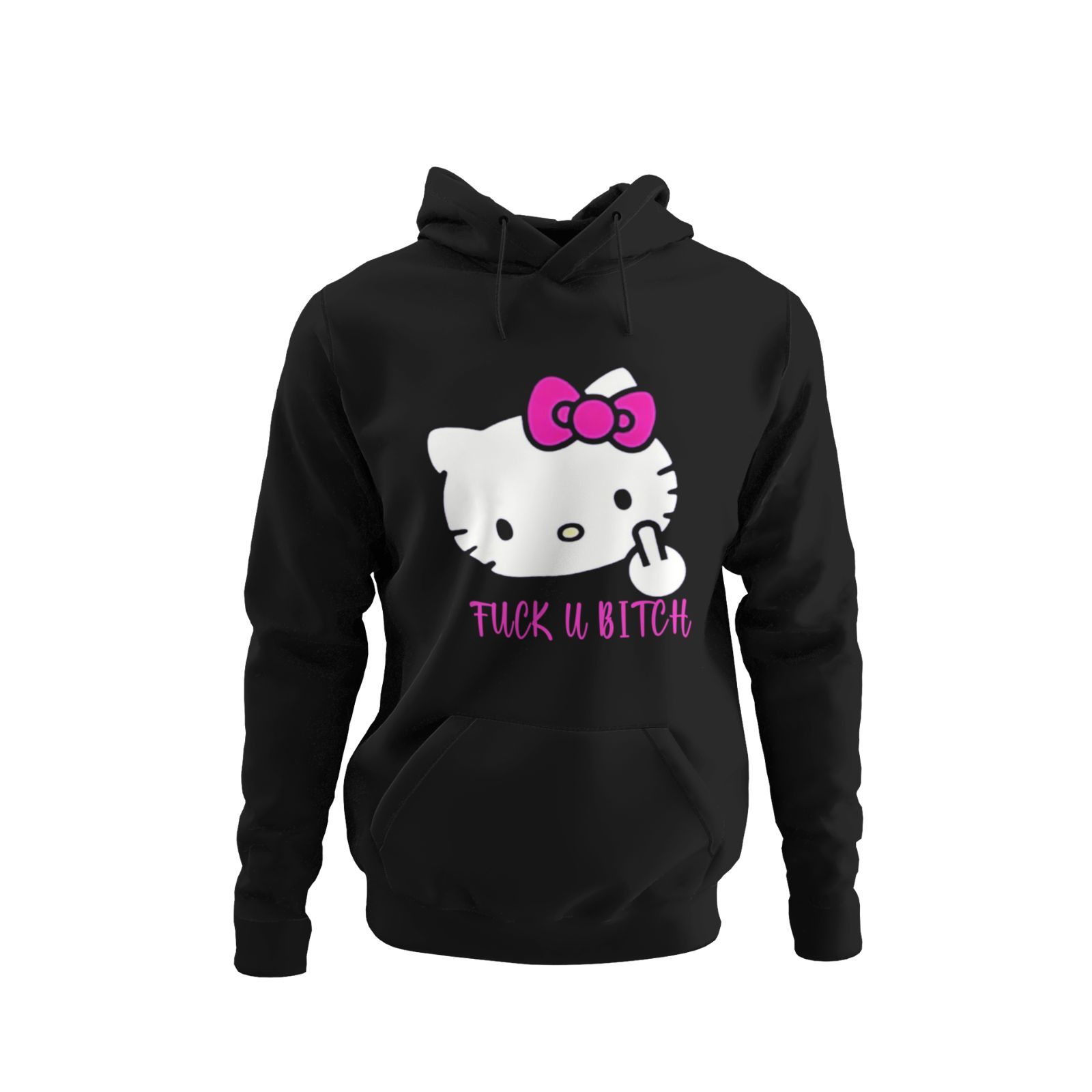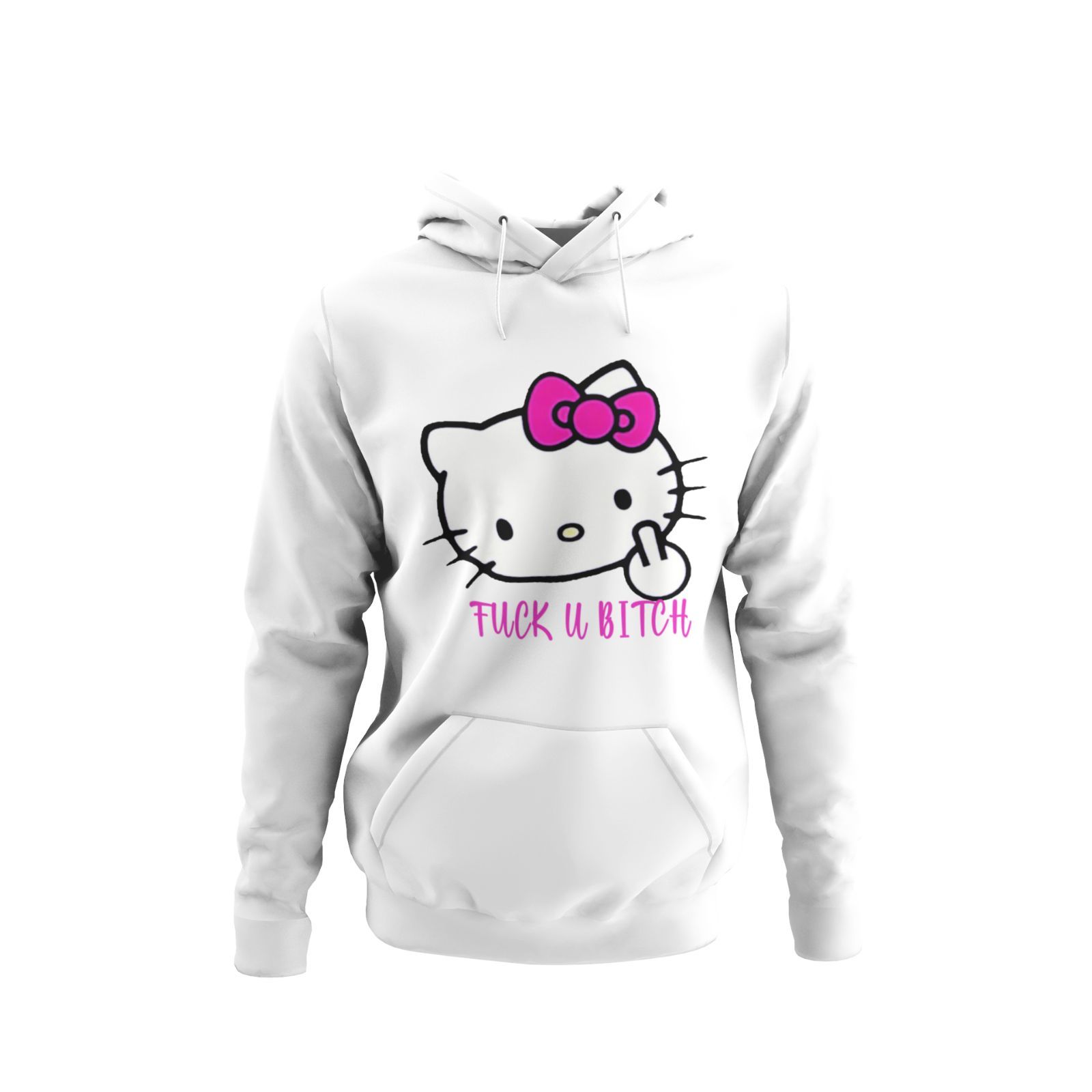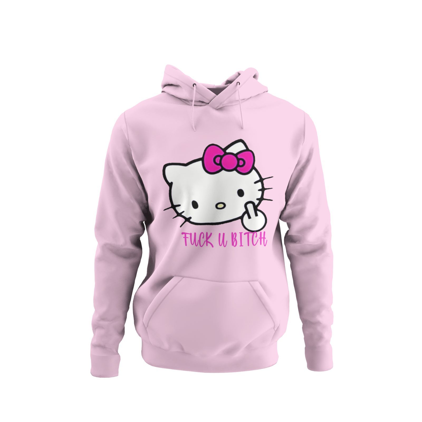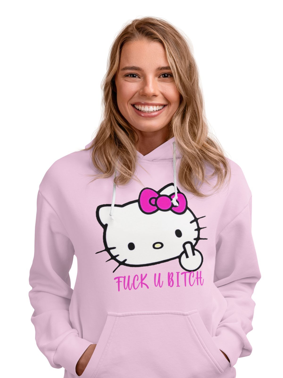 Hello Kitty Katze Cat Damen Hoodie Japan FUCK YOU Mittelfinger Nerd Otaku Geek
