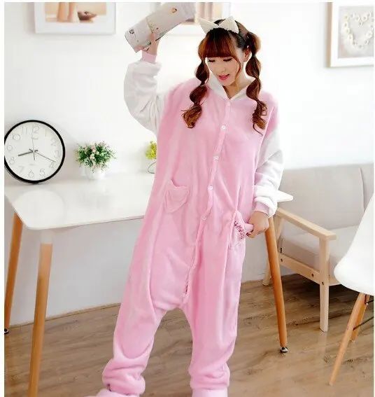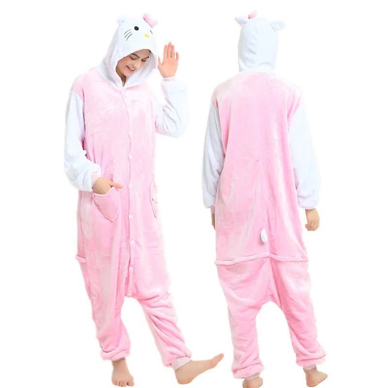 Hello Kitty Kigurumi Onesie Erwachsene Tier Cosplay Pyjamas Plusch Kapuze