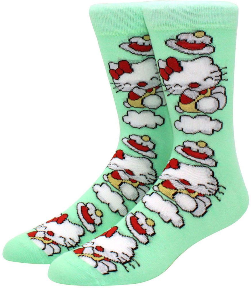 Sanrio Hello Kitty Minzgrüne Socken - Kätzchen Motiv-Socken - Sanrio Lustige Cartoon Socken