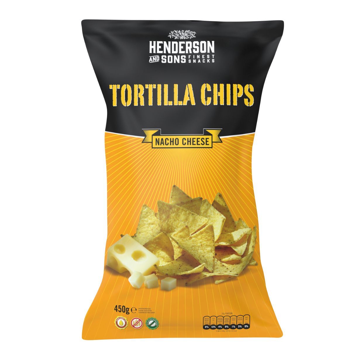 Henderson and Sons Nacho Cheese Tortilla Chips glutenfrei 450g