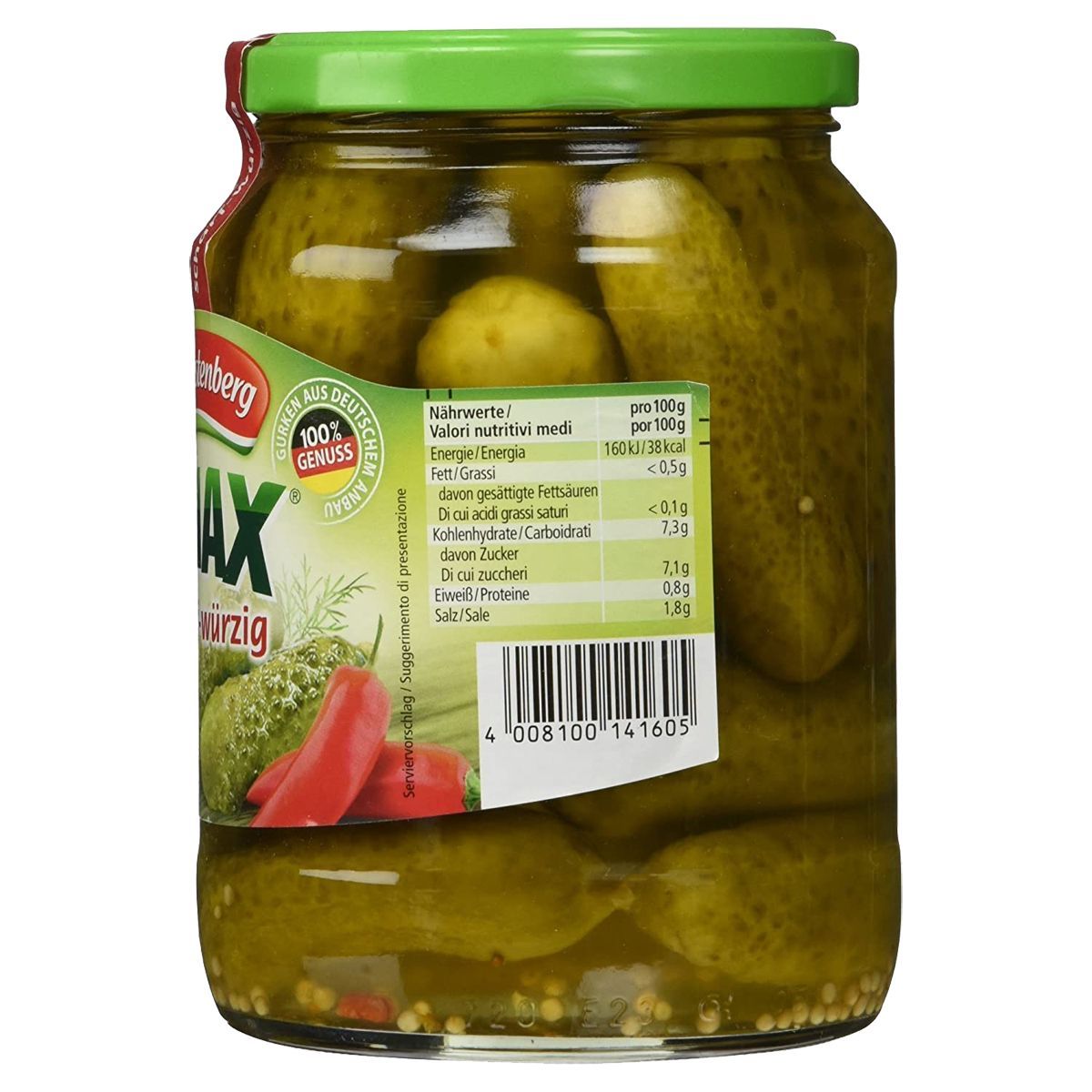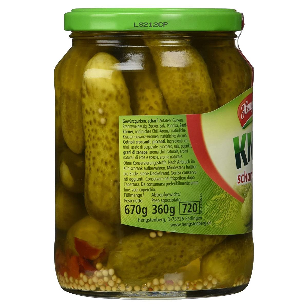 Hengstenberg Knax Gewürzgurken scharf würzig im Glas vegan 670g