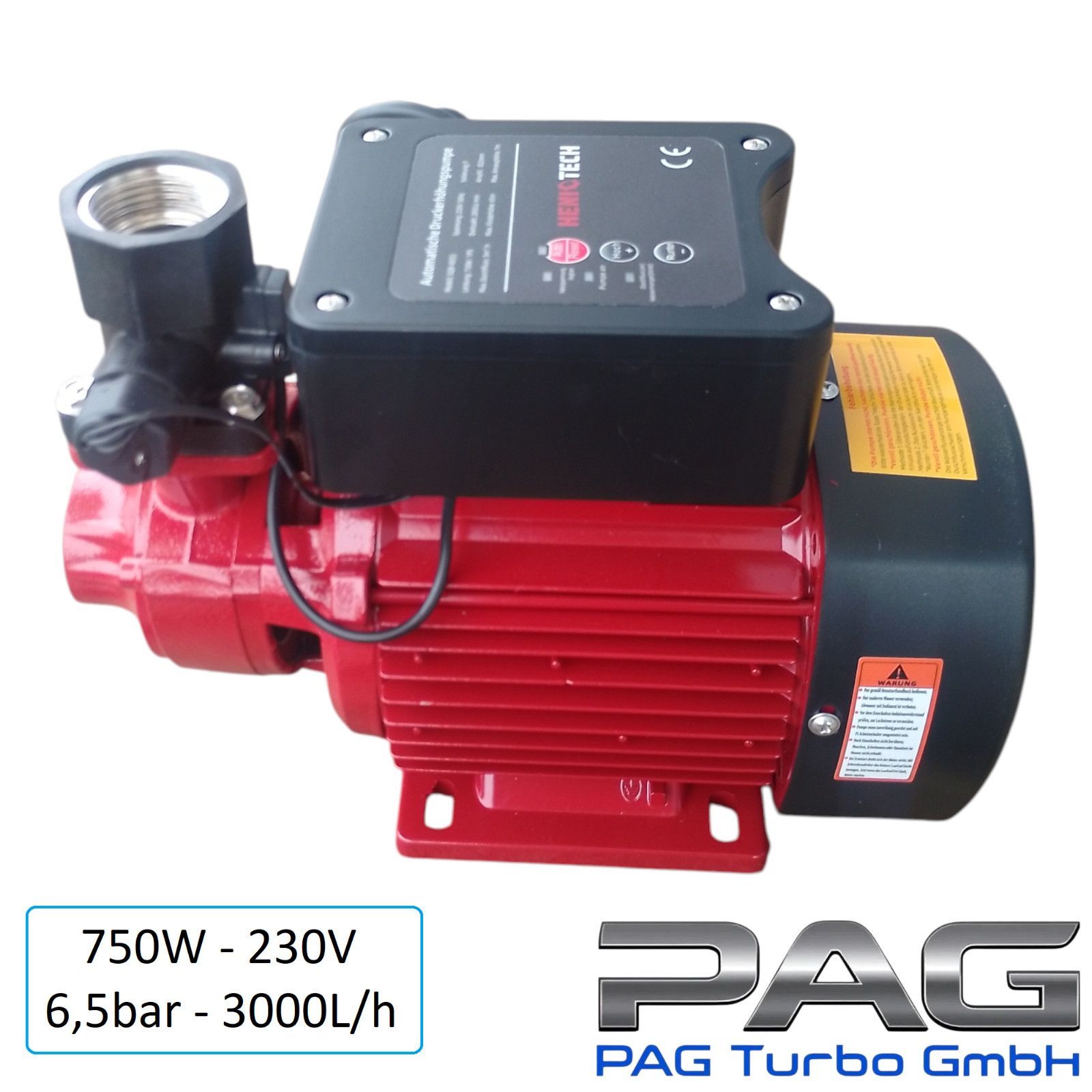 Firma PAG Turbo GmbH bietet folgendes an: Automatische Selbstansaugende Gartenpumpe ( Automat ) SQB80 mit einem Durchflusswächter. Der Durchflusswächter schaltet die Pumpe bei Wasserbedarf automatisch ein und nach Beendigung der Der Wasserentnahme wieder aus. Daten der Pumpe: Leistung: 750W 3,5A - S