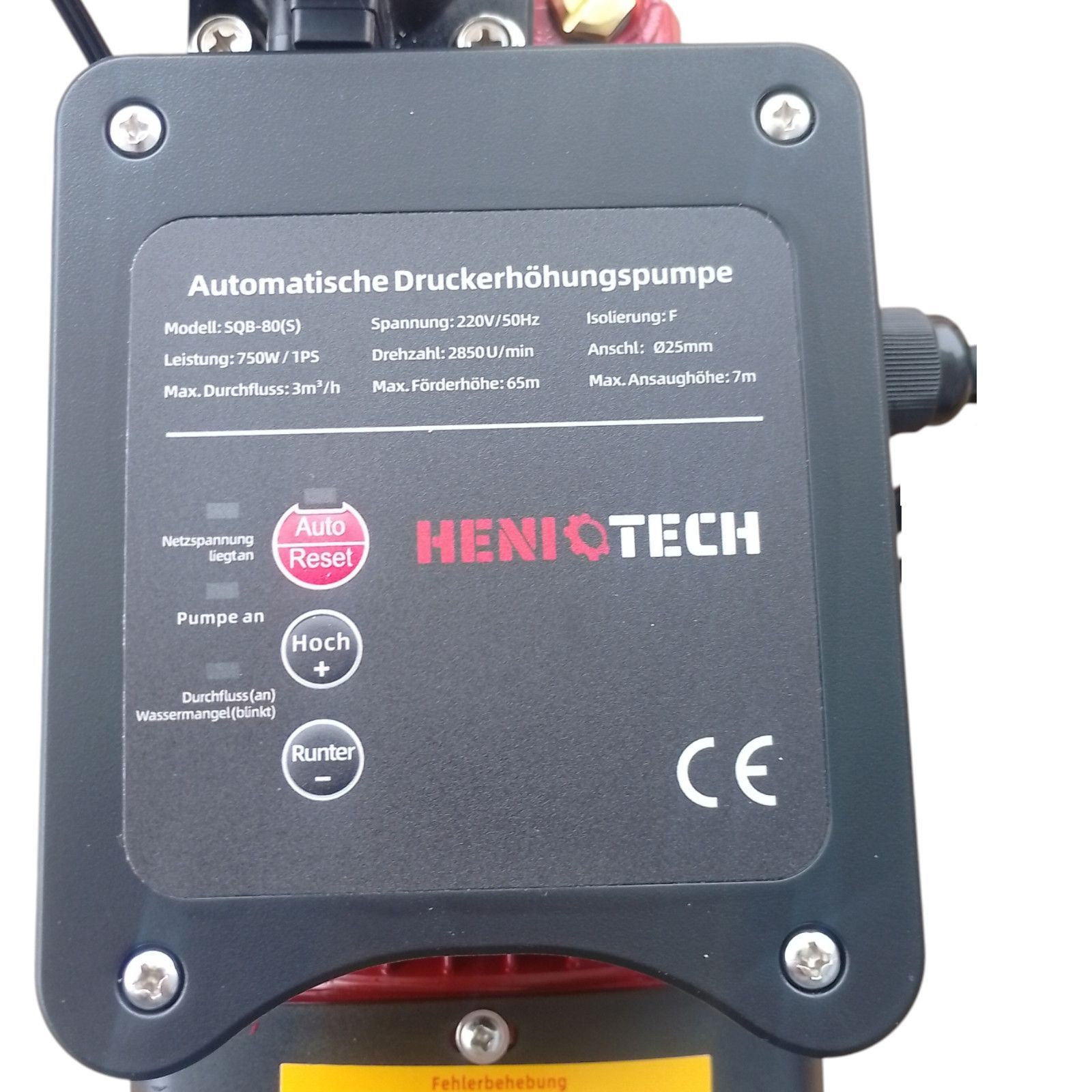 Heniotech Automat Automatische Gartenpumpe SQB-80 - 750Watt - 3000L/h - 6,5Bar