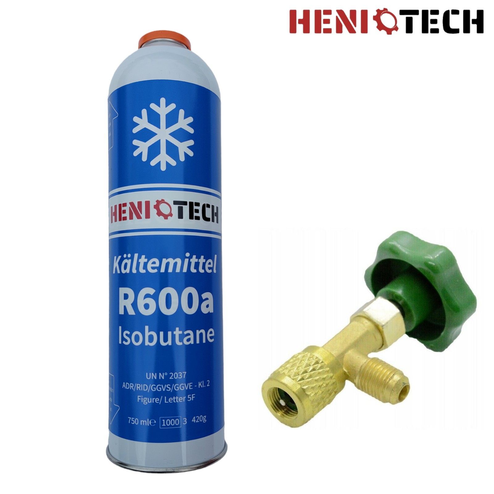 Heniotech Isobutan Kältemittel R600a - 750ml - 420g mit Entnahmeventil