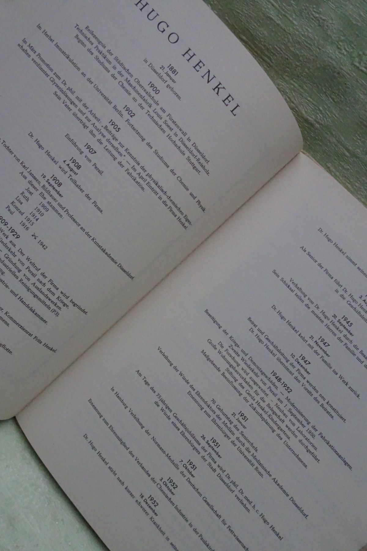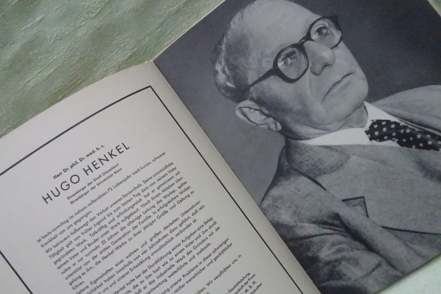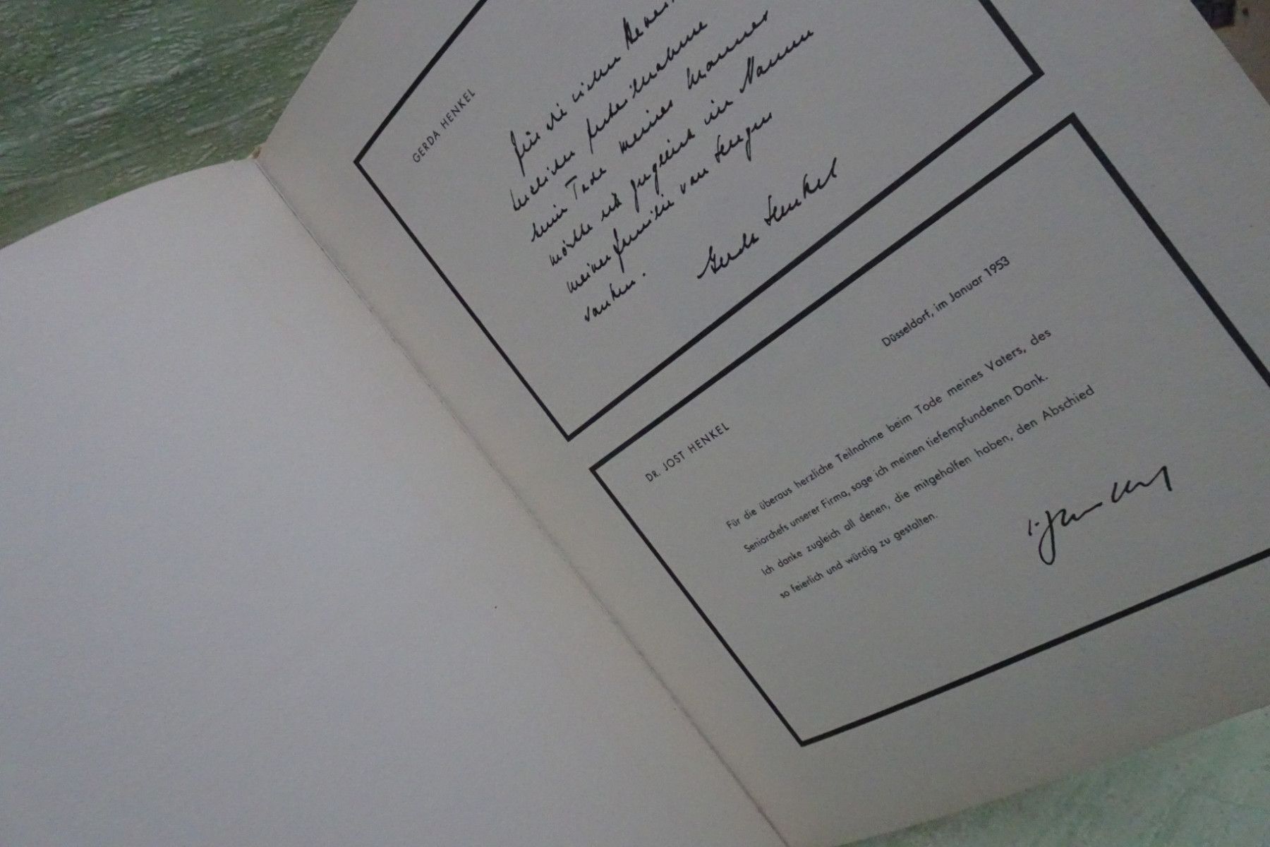 Sammeln & Seltenes ... aus Freude an schönen Dingen ..... ca 31,5 x 24 cm 34 Seiten Hardcover geprägter Goldschriftzug ua: Todesanzeigen für Herrn Dr phil Dr med h c Hugo Henkel 18.12.1952 Portraitfoto Lebenslauf & ausführliche Beschreibung Foto des Henkelswerks Fotos von der Bestattungszere... Mehr