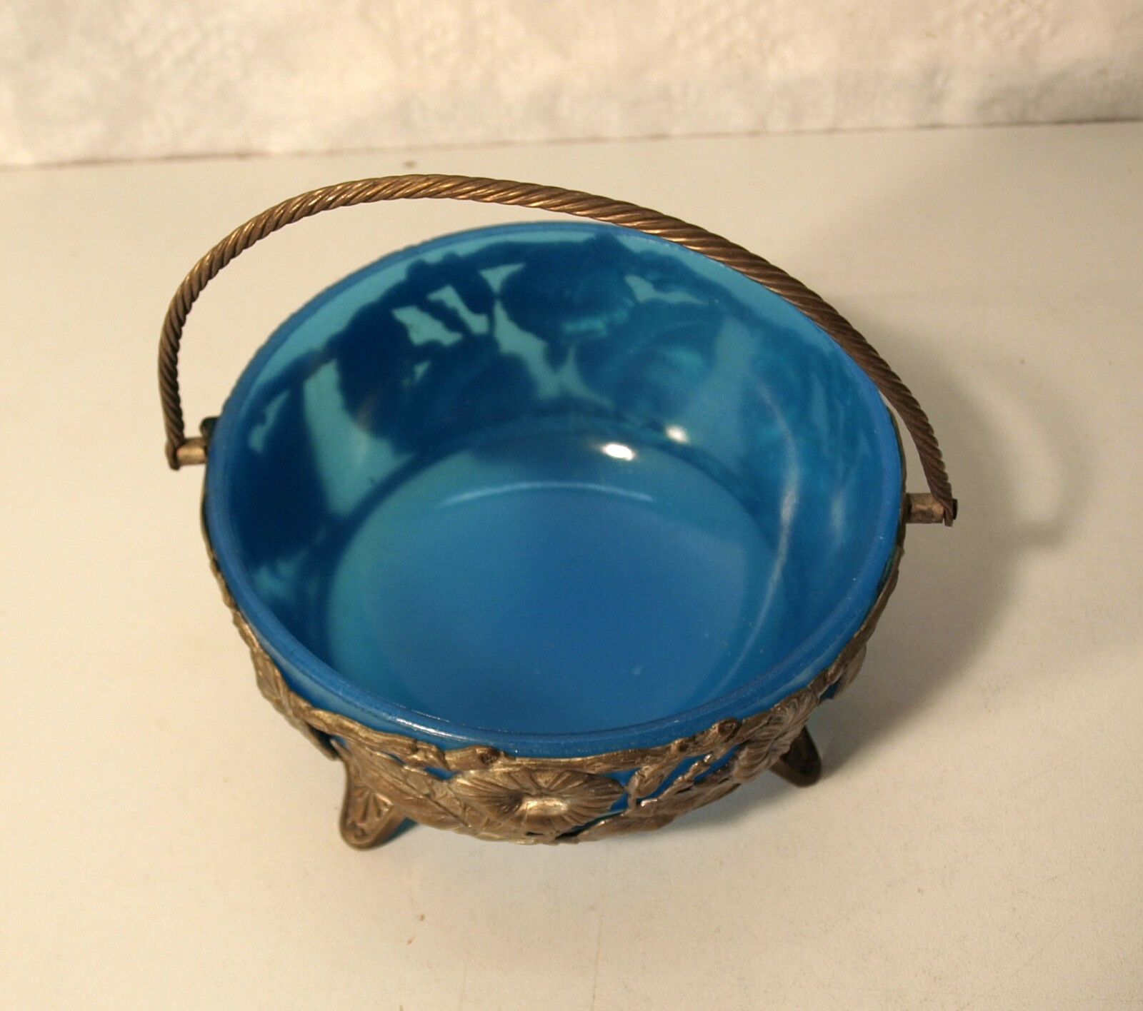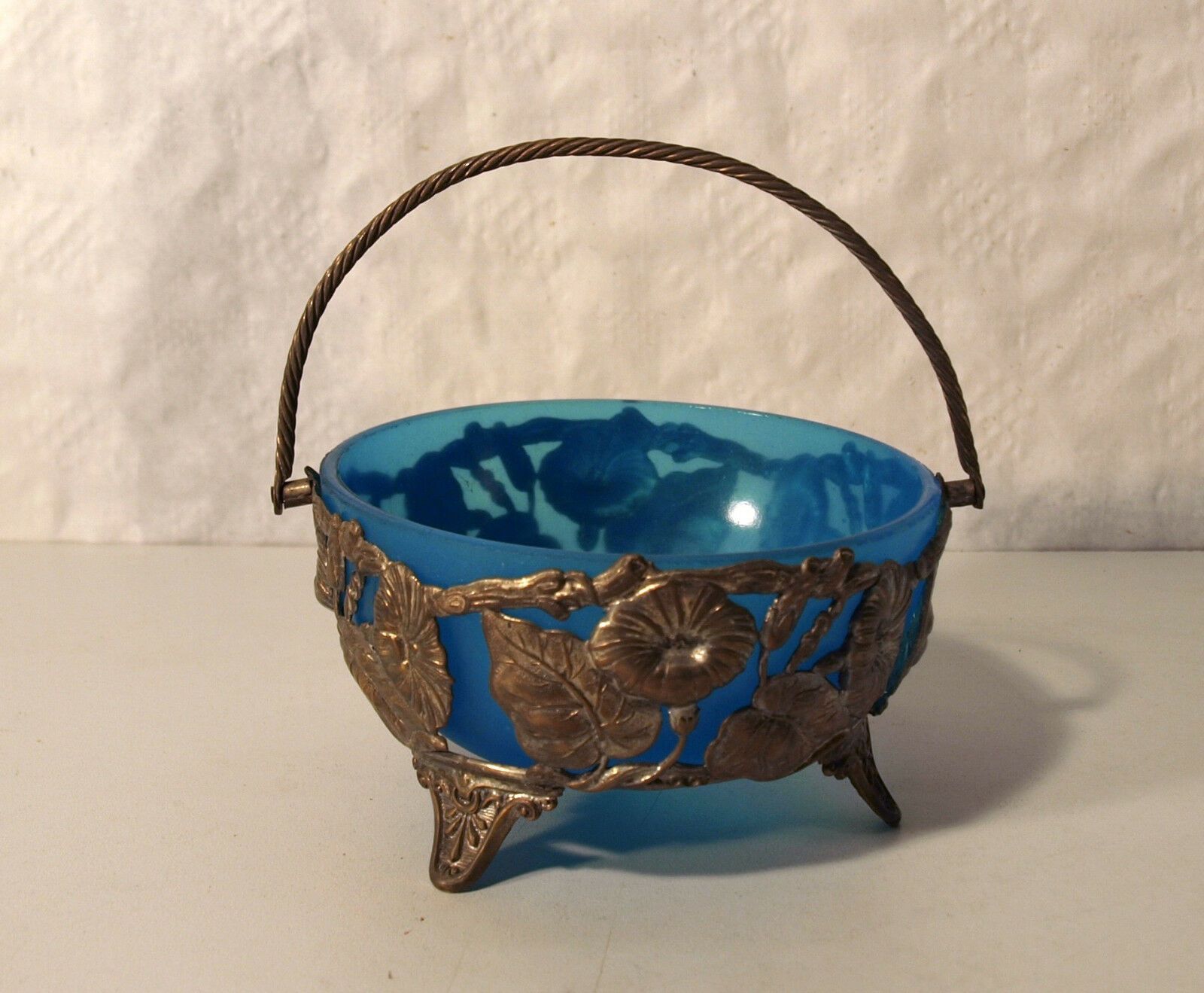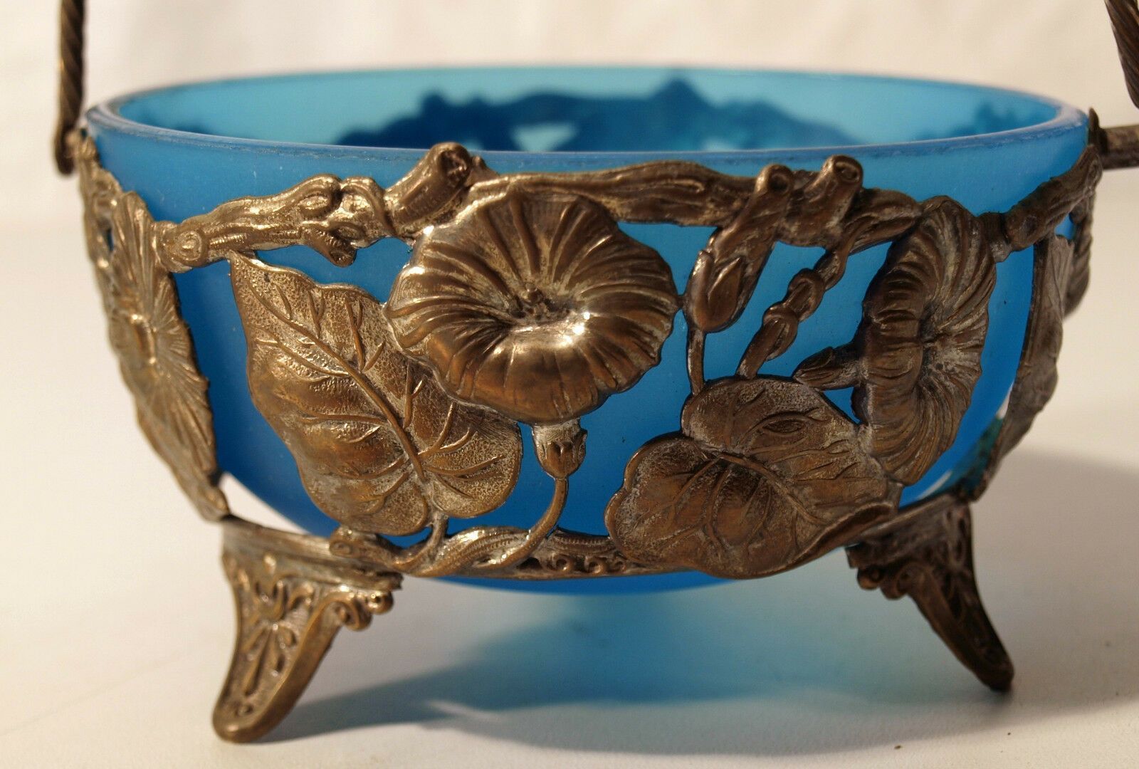 Henkelschale um 1820 (Biedermeier). Material: Versilbertes Kupfer und blaues Glas. Maße: H 13, Durchmesser 12 cm. Antikes am Deich - Inh: Oliver Kipp-Trense G M T Sprache erkennen Afrikaans Albanisch Arabisch Armenisch Aserbaidschanisch Baskisch Bengalisch Bosnisch Bulgarisch Burmesisch Cebuano Chic