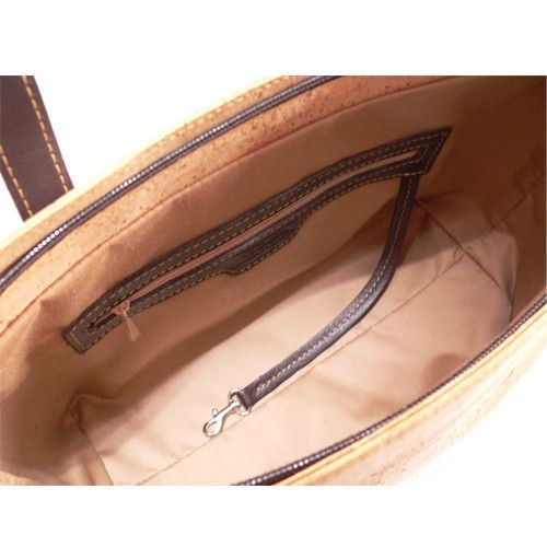 Henkeltasche, Schultertasche aus Kork Einem großen Hauptfach Einem seitlichen innenliegenden Reißverschlußfach Einem Handyfach Einem Karabinerhaken an einem Lederband als Schlüsselfinder Zwei Henkeln aus Leder Vier Standfüßen Diese Tasche besteht aus Kork sowie aus Leder und ist handgefertigt. Maße der Tasche: ca. 38 x ca. 11 x ca. 22 cm.