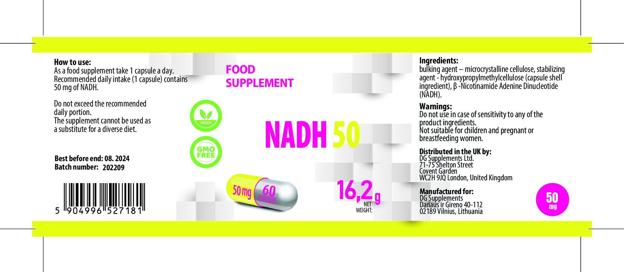 Hepatica NADH 50mg 60 Vegan Kapseln, Laborgeprüft, Hochdosiert, Nicht GVO