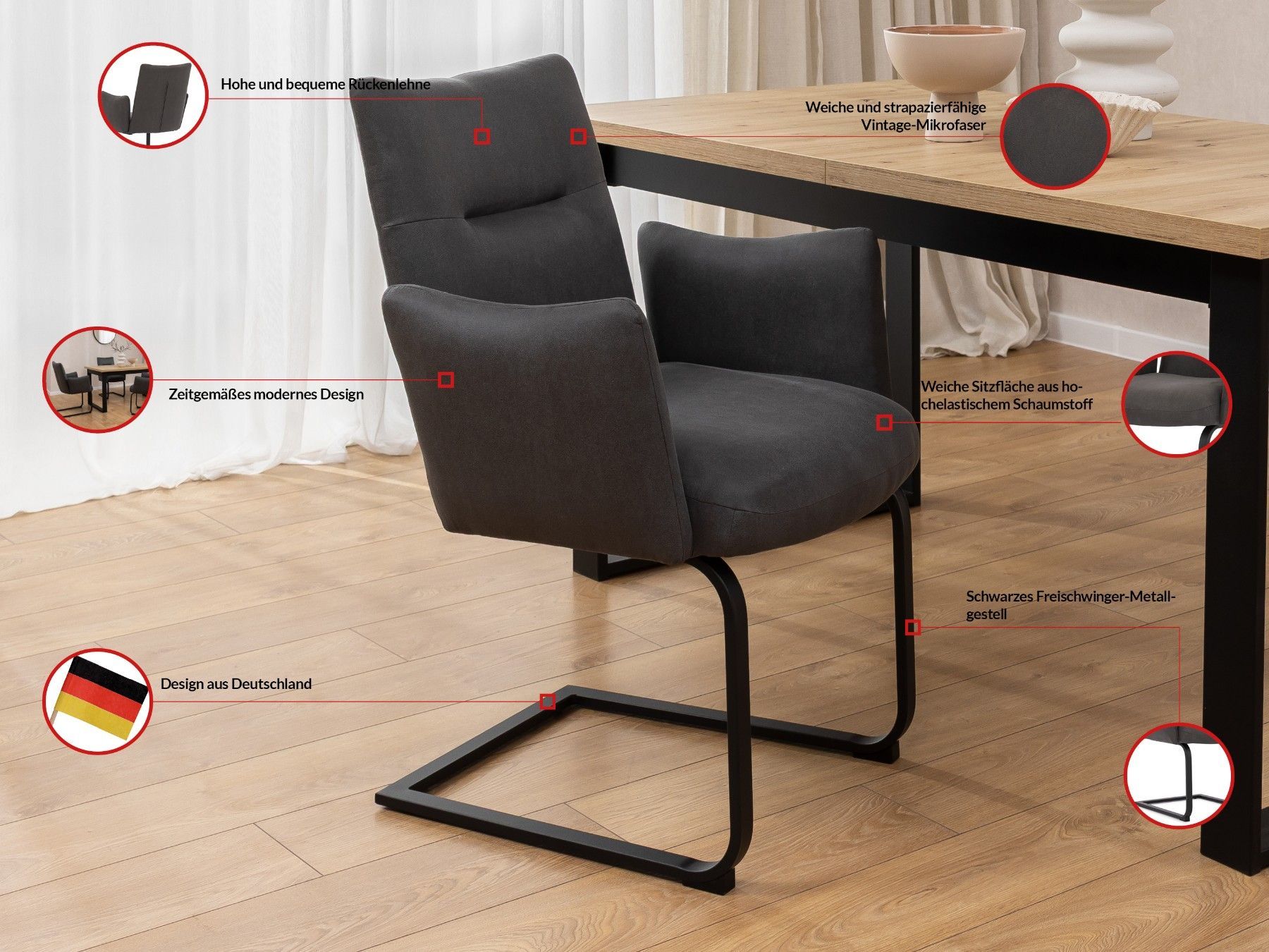 Hera - 2er Set Polsterstuhl im modernen Design aus Mikrofaser Anthrazit Vintage