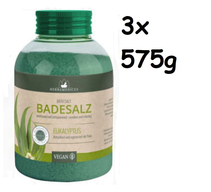 Herbamedicus Badesalz Eukalyptus wohltuend entspannend, 3x 575g