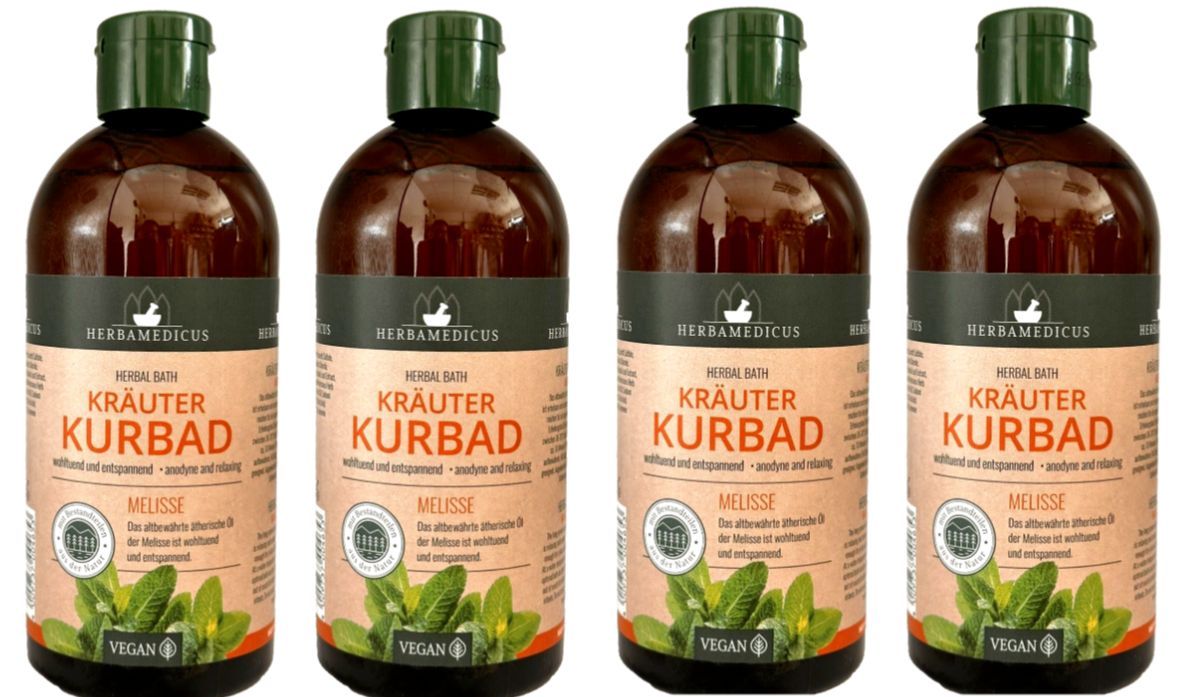 Herbamedicus Kräuterbad Kurbad Melisse Badezusatz, 4 x500ml