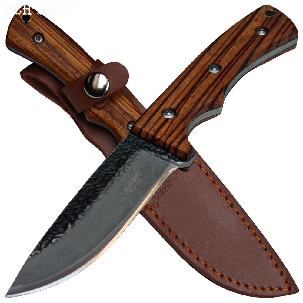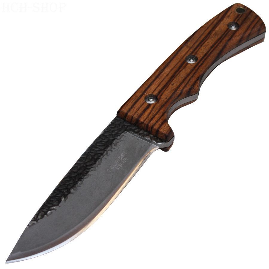 Herbertz Herbertz Gürtelmesser Jagdmesser teilweise Schmiedezustand Zebraholz Lederscheide
